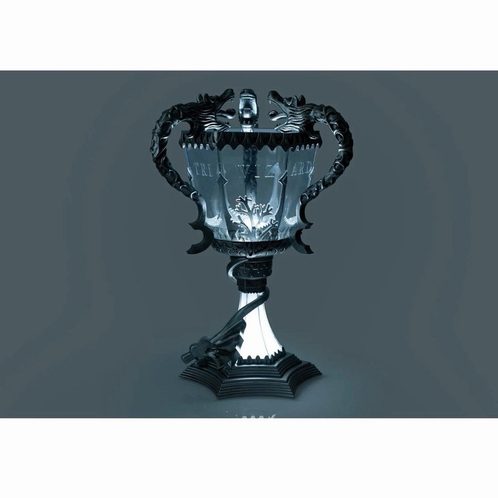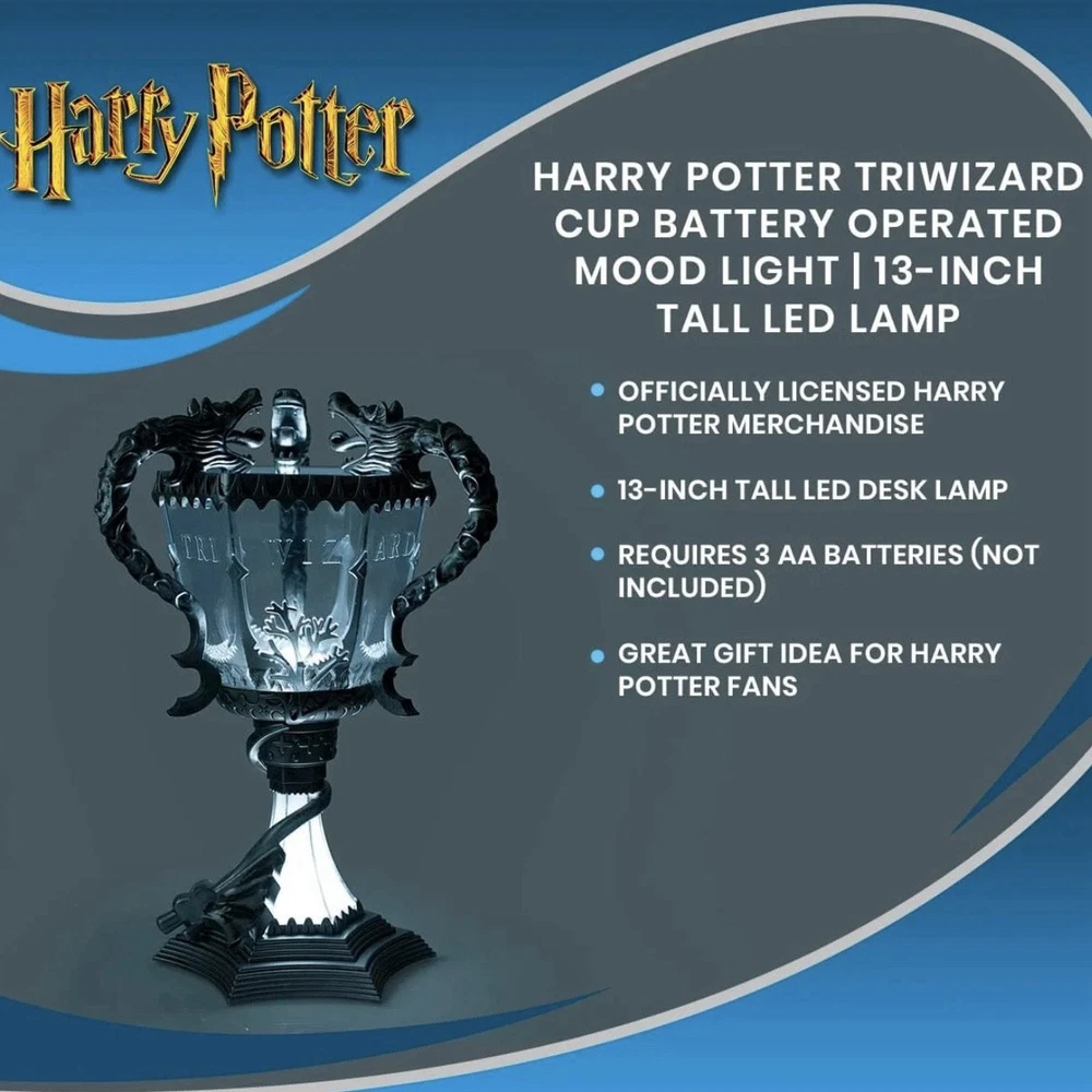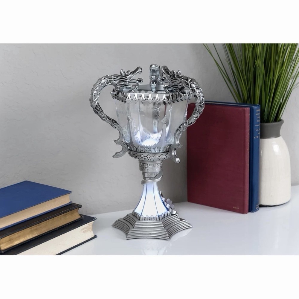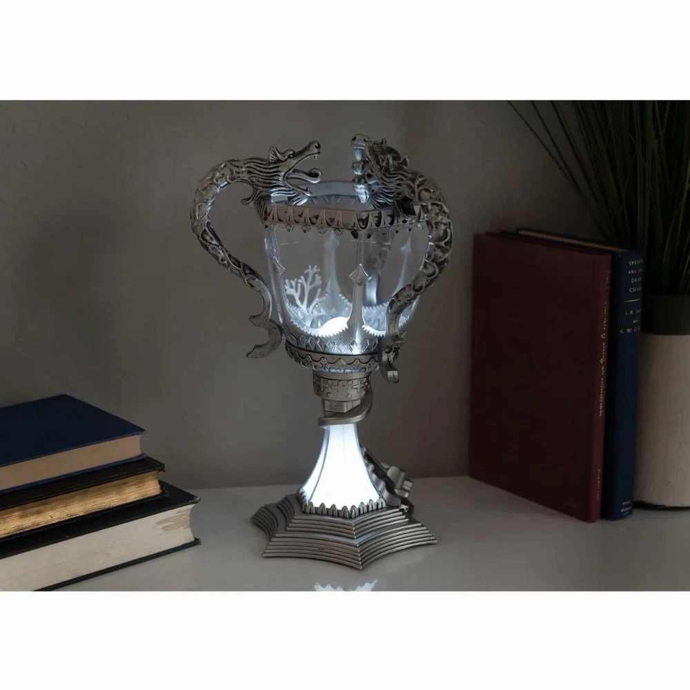 This replica of the Triwizard Cup from Harry Potter and the Goblet of Fire measures over a foot tall! Both the base and the cup light up with LED bulbs powered by batteries so you can take it with you wherever you venture. It's a great decoration for a Harry Potter viewing party or birthday gift. Even unlit it makes a great display collectible for the HP fan.
