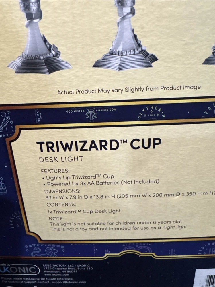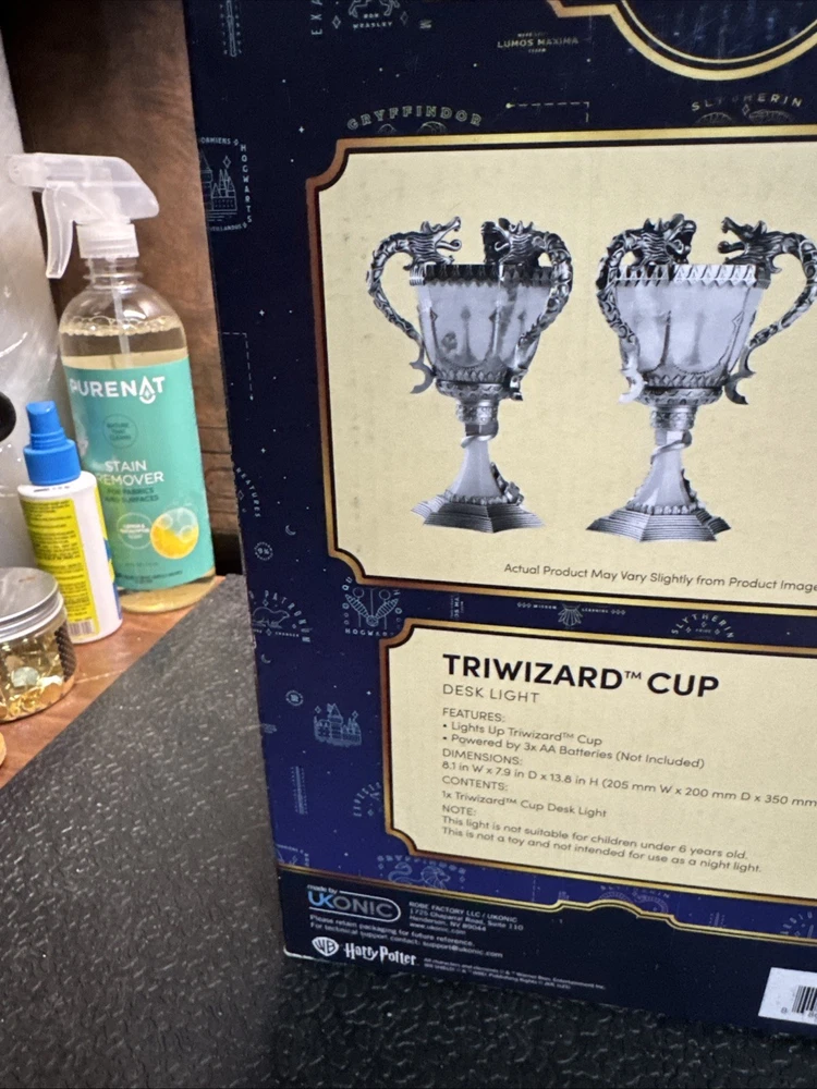 The Harry Potter Triwizard Cup Desk Light is a stylish and magical addition to any fan's collection, brought to you by the UKONIC brand. This battery-operated desk light stands at 13 inches tall and features a design inspired by the iconic Triwizard Cup from the Harry Potter franchise. Perfect for adding a touch of fantasy and wizardry to your workspace or bedside table, this desk light is sure to delight fans of the magical world created by J.K. Rowling. Ideal for both display and practical use, this desk light is a must-have for any Harry Potter enthusiast.