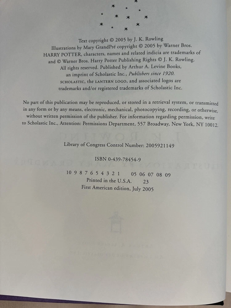 Harry Potter and the Half-Blood Prince by J K Rowling 2005 Hardcover Edition