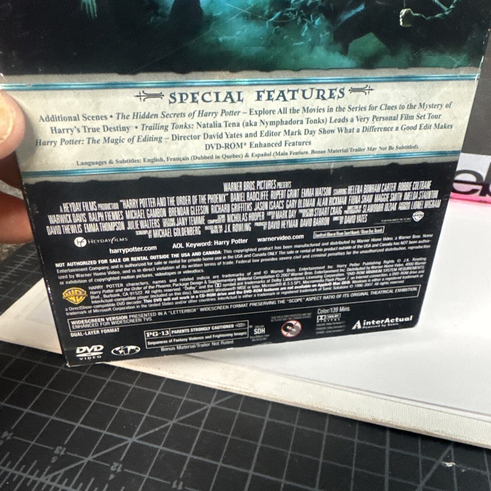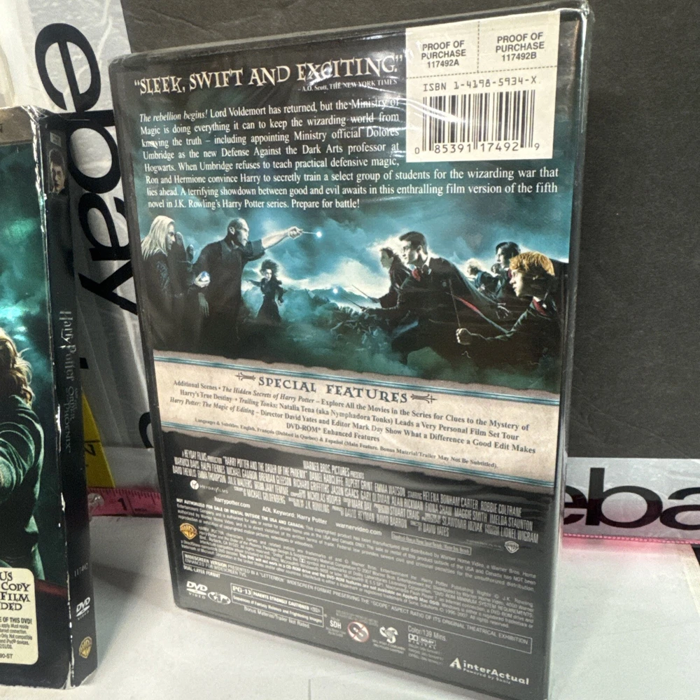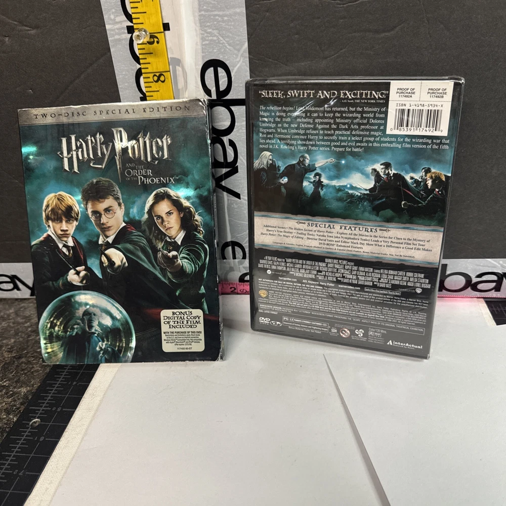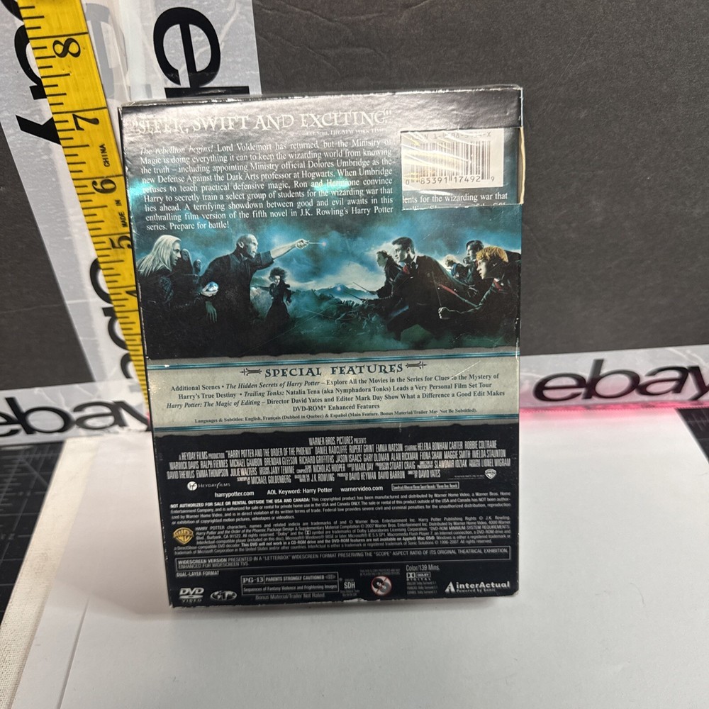 The product is a DVD release of "Harry Potter and the Order of the Phoenix," the fifth installment in the popular Harry Potter film series. This special 2-disc edition from 2007 features actors Rupert Grint, Daniel Radcliffe, and Emma Watson portraying their iconic roles, directed by David Yates. The movie falls under the genre of Sci-Fi & Fantasy with a PG-13 rating, making it suitable for a wide audience of fans of the magical world of Harry Potter. Please see photos for condition. Please feel free to contact us with any questions before purchasing.