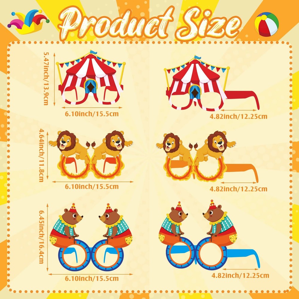 Harrycle 32 Pcs Circus Party Decorations Clown Paper Glasses Carnival Photo Booth Props Circus Clown Eyeglasses for Carnival Party Decoration Circus Birthday Baby Shower Party Supplies Description Features: Not only are our circus carnival paper glasses a fantastic addition to your party decorations, but they also make nice photo booth props! Set up a photo booth with a backdrop of circus tents and popcorn stands, and let your guests have a blast snapping fun photos with these quirky glasses. The pictures will be treasured memories of the joy and laughter shared at your event. In addition to being a wonderful addition to carnival-themed parties, these clown paper glasses can also be applied for Halloween costumes, theater productions, or as a fun novelty gift. With their versatile design and vibrant colors, these circus party favors are sure to add a touch of playfulness and whimsy to any occasion. Specifications: Material: card stock Color: multicolor Size: 15.75 x 4.17 inches Package includes: 32 x Carnival circus paper glasses Notes: Manual measurement, please allow slight errors on size. The color may exist a slight difference due to different screen displays. Circus Paper Glasses: you will get 32 pairs of 16 different styles circus carnival eyeglasses; Sufficient quantity for your needs, classic circus clown design with playful patterns will instantly transport your guests to the magical world of the circus Unique Design: our circus photo booth props are designed with classic carnival circus elements, from classic clown noses and oversized bow ties to colorful patterns and wacky shapes. Ideal for taking memorable photos at your carnival circus party event Reliable Materials: the clown glasses are made of quality cardboard, with exquisite workmanship, clear printing, light weight, comfortable to wear, and will not cause additional pressure on the bridge of the nose, suitable for long term use at the party Suitable Size: the size of carnival glasses is about 15.75 x 4.17 inches; Suitable size for both children and adults. Ideal for carnival photo booths props, circus party favors, or as clown party decorations, circus party supplies Wide Application: Whether you're hosting a circus birthday party or a carnival clown baby shower, these circus carnival glasses are a nice addition for your celebration. Your guests will love slipping on these glasses and clowning around for the camera Shipping from the USA All of our products are shipped from the USA, ensuring quick delivery to your destination. Payment We offer the following payment methods: PayPal, credit card, bank transfer, and eBay's secure payment system. Free Shipping & Free Returns Shipping within the USA is FREE. Additionally, any return is absolutely free for you. Risk-Free Purchase You have the option to return an item within 30 days without any justification. We cover the return shipping costs! Fast Shipping We ship immediately upon receipt of payment. Generally, the package is delivered within 2-3 days in the USA. If it takes longer, we will contact you. Quality and Costs Made in Europe, USA, China No customs fees or additional charges Total satisfaction guarantee Invoice with declared VAT available upon request in .pdf format Feedback Your feedback is very important to us. After you pay for your purchase, you will automatically receive positive feedback from us.