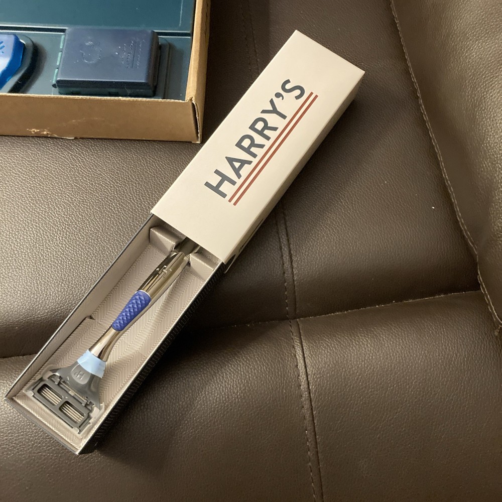 Harry's Razor Set Value Pack 5 German Steel Cartridges Orange Silver Handle Men