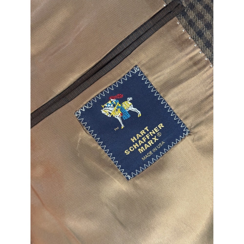Classic meets quality! This Hart Schaffner Marx 42R Men's Blazer features a timeless brown houndstooth check pattern in a soft wool blend. Union Made in the USA with full lining, 2-button front, vented back, and button cuffs. Perfect for business or classy casual looks. Measured flat: Chest: ~25.5" Sleeve: ~35.5" Length: ~33" Shoulder: ~20"Brand: Hart Schaffner Marx Size: 42R Jacket/Coat Length: Regular Type: Sport Coat Style: Two Button Closure: Button Color: Brown Pattern: Houndstooth Material: Wool (likely wool blend) Lining Material: Satin (assumed from texture) Theme: Classic Fit: Regular Country/Region of Manufacture: United States Vintage: Yes Features: Lined, Vented, Button Cuffs, Union Made Occasion: Business, Formal, Casual Garment Care: Dry Clean Only Season: Fall, Winter, Spring