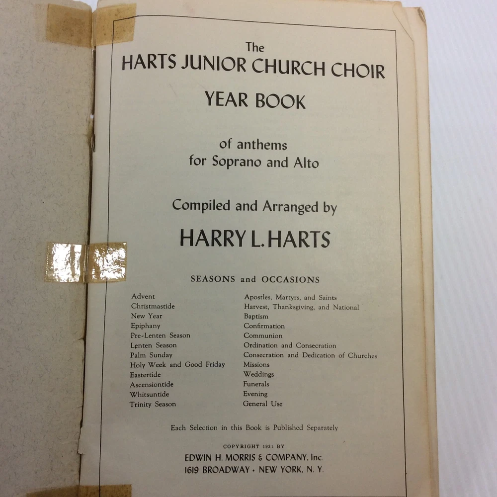 Harts Junior Church Choir Year Bok Choral Music Songbook SA 1931