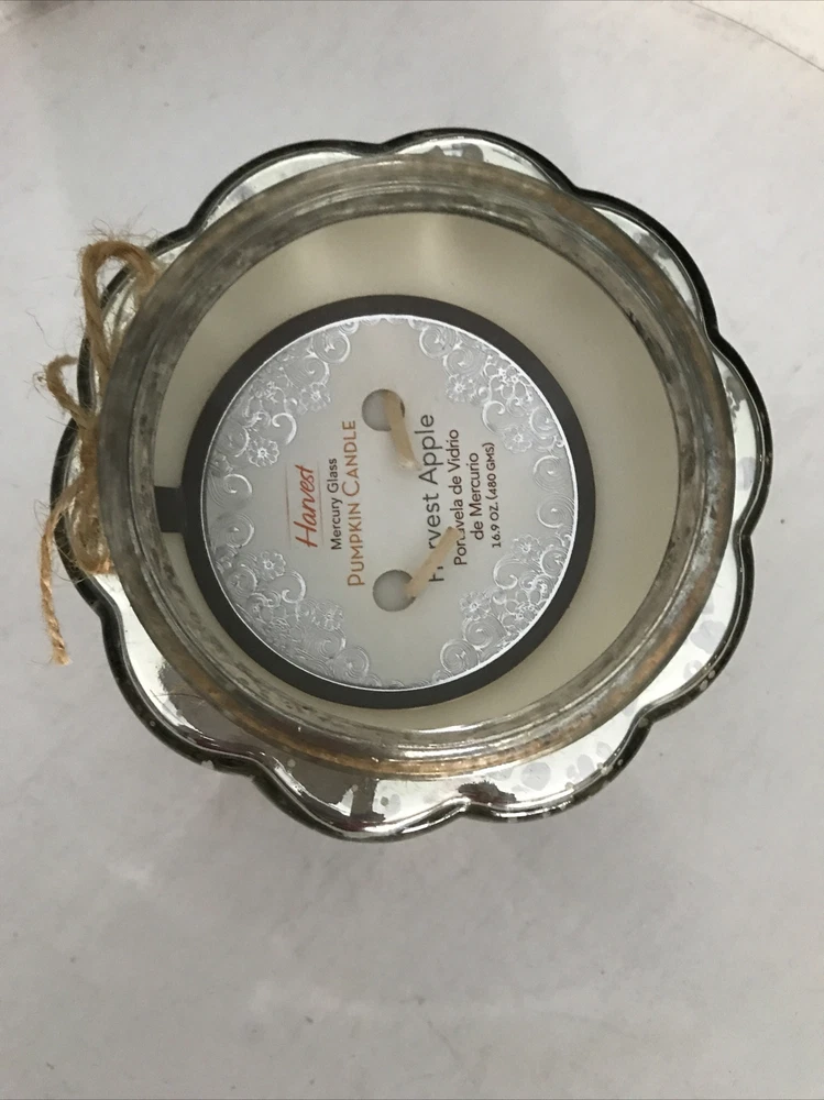 Harvest PUMPKIN CANDLE Harvest Apple 16.9 OZ Two Wick MERCURY GLASS JAR - NEW