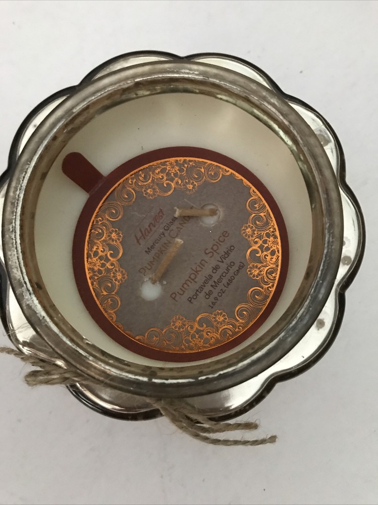 Harvest PUMPKIN CANDLE PUMPKIN Spice 16.9 OZ Two Wick MERCURY GLASS JAR - NEW.