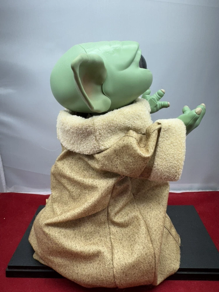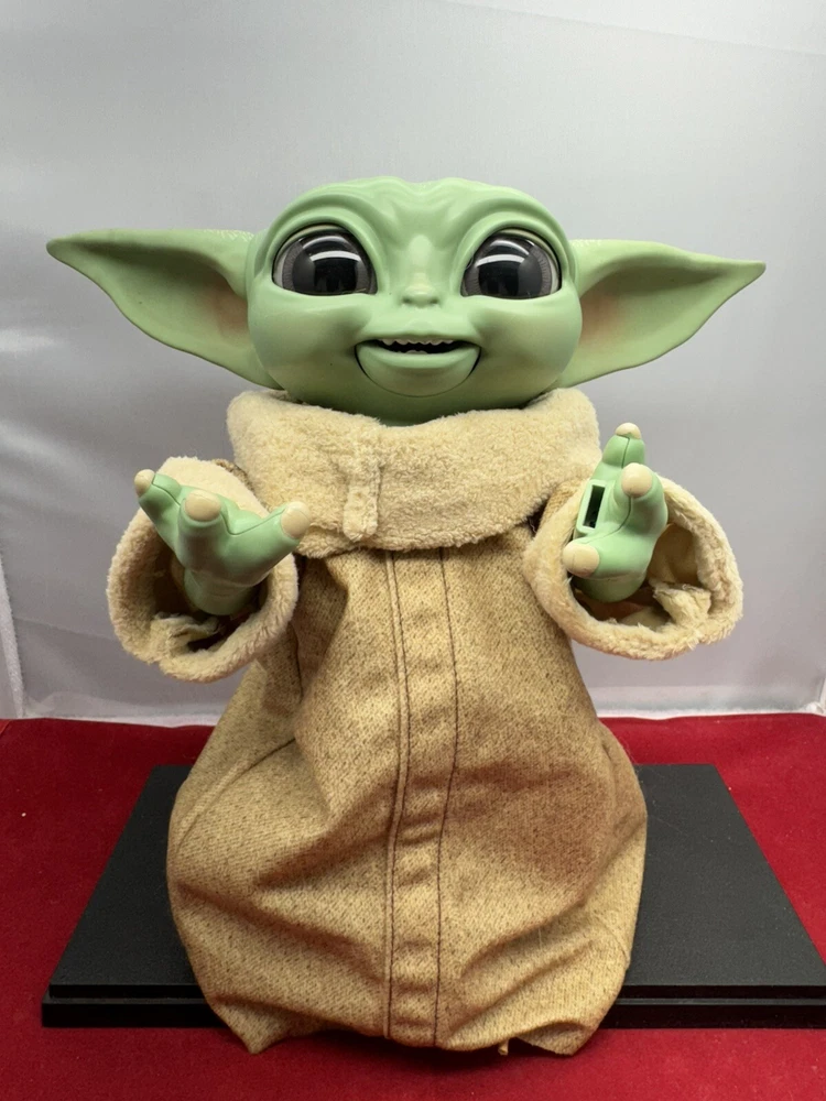 The Hasbro 2021 Star Wars Mandalorian Child Animatronic 9" Baby Yoda Talking Grogu is an action figure based on the character Grogu, also known as The Child, from the TV show The Mandalorian. This plastic figure stands 9 inches tall and features animatronic capabilities, allowing it to talk and make sounds. It is battery-powered and comes dressed in clothes to resemble the character from the popular Star Wars franchise. This collectible item appeals to fans of Star Wars and The Mandalorian, offering an interactive and detailed representation of the beloved character.