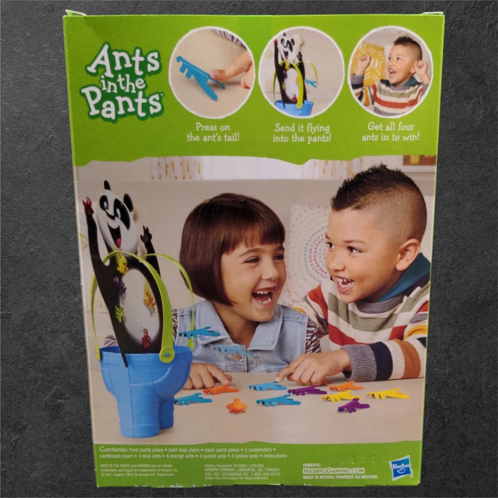 Get ready for some fun with the Hasbro Ants in the Pants Fun Board Game! This game is perfect for 2-4 kids ages 3 and up. The game includes a plastic game board with multicolored ants and a pawn to represent each player. The game is easy to learn and has a strategy component, making it great for family game night. It also comes with a CPSIA Cautionary Statement, ensuring safety during playtime. This complete game is in standard edition and does not require batteries. Add Ants in the Pants to your board game collection today! If you like this item and would like to see more like it, click the link below to check out our store. 523 Supplier LLC | eBay Store Return Policy : Customer satisfaction is important to us. Good communication is crucial for eBay sales. Before leaving feedback, please notify 523 Supplier LLC about any concerns using eBay messaging. Items must be returned in original condition, with tags if applicable. Buyers are responsible for return postage . If the wrong item was shipped, we will refund the entire amount including return shipping.
