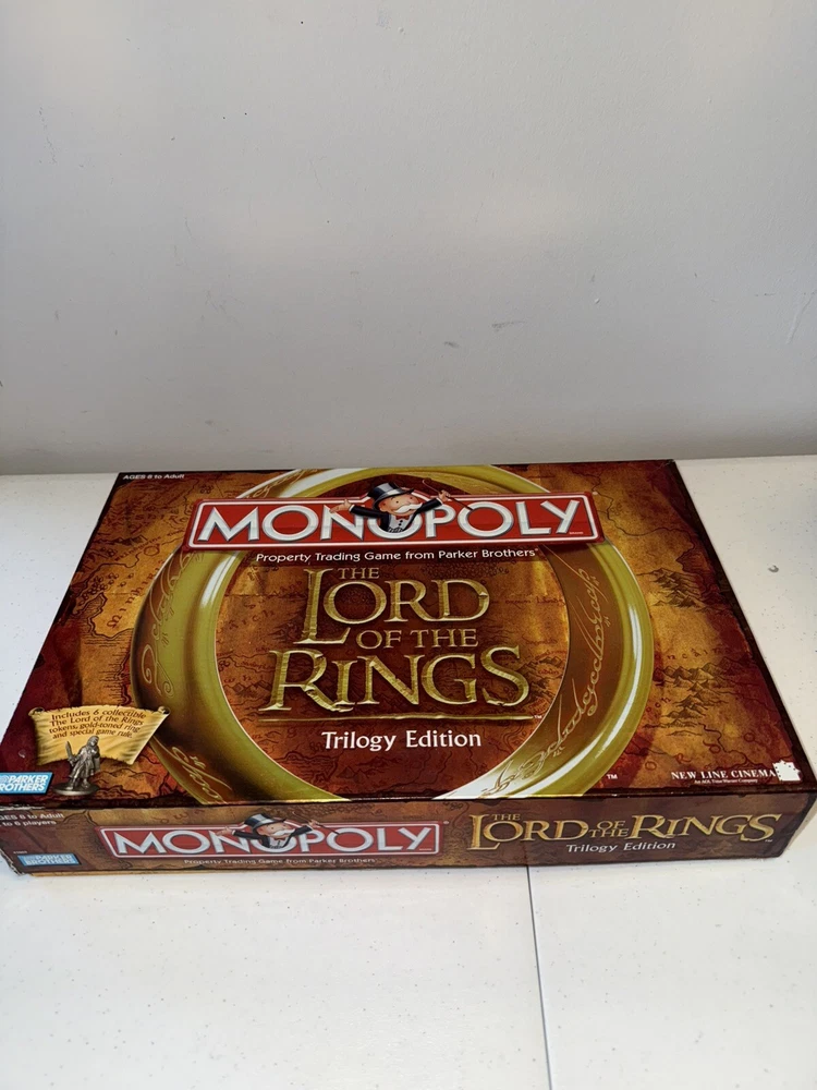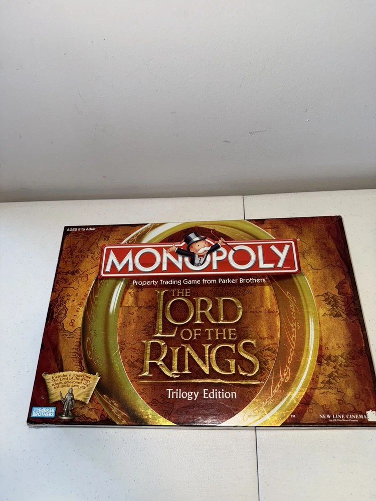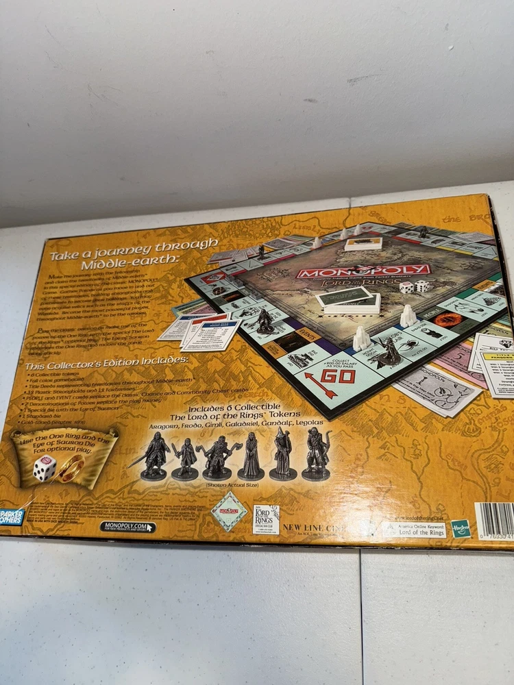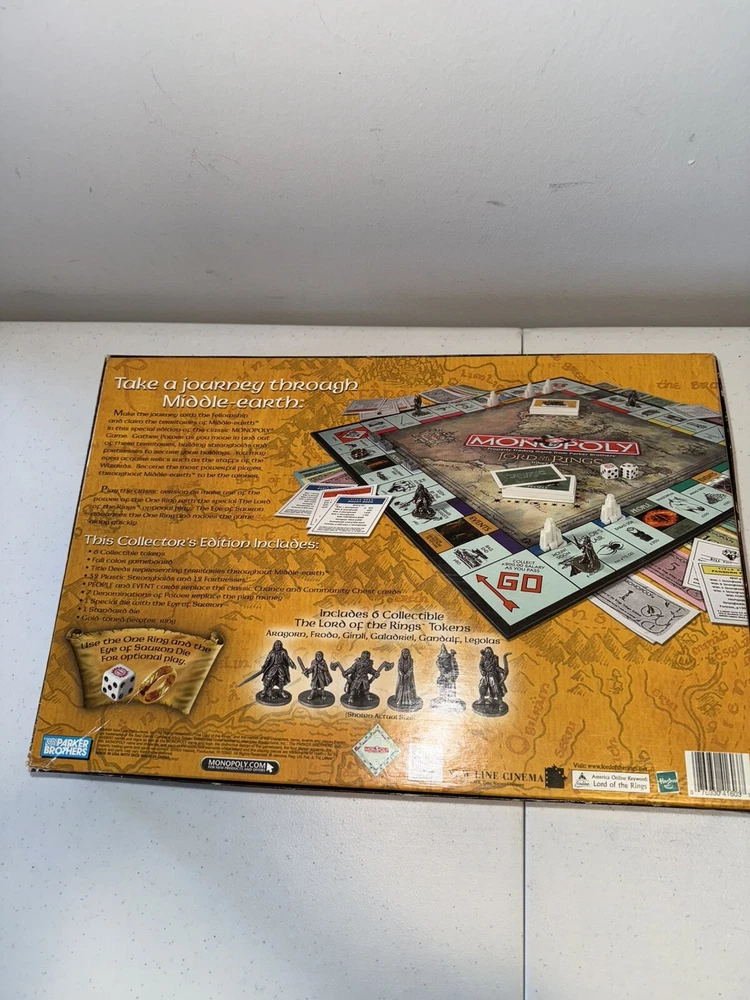 Game Title:MonopolyRecommended Age Range:8+Year:2003Min. Number of Players:2 playersBrand:HasbroMPN:7693041603, 41603Type:Complete GameAge Level:8-11 YearsGame Type:Board GameGender:Boys & GirlsCharacter Family:Lord of the RingsAward:Games 100Theme:FinanceUPC:0076930416037gtin13:0076930416037