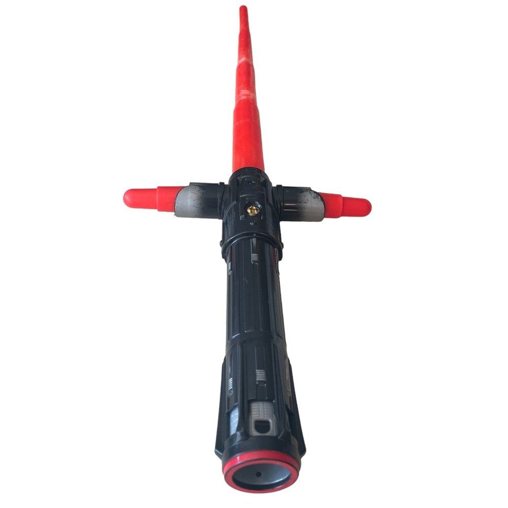 Unleash your inner Jedi with this 2015 Hasbro Blade Builders Kylo Ren Retractable Lightsaber Attachment from the Star Wars franchise. Join the dark side with this red and black toy lightsaber inspired by IV: Star Wars The Force Awakens movie character Kylo Ren. This officially licensed Disney product is a perfect addition to any Star Wars collection and is great for cosplay or conventions. The lightsaber attachment is not only durable but also retractable, making it easy to store and transport. Get ready to rule the galaxy and complete your Kylo Ren costume with this iconic piece. Please note this model does not light up, or make sound The blade does have some marks on it, & the handle has signs of use (please see pictures) Ships safe & fast!