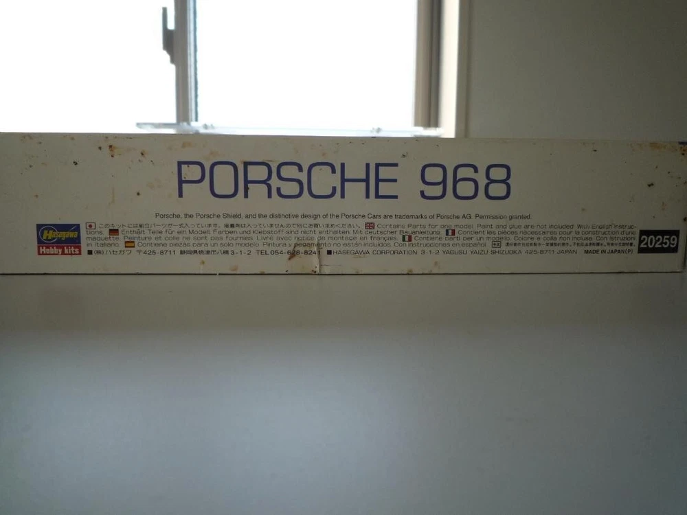 Hasegawa 1/24 Porsche 968 Plastic Model Limited Edition 20259 Hasegawa 1/24 Porsche 968 Plastic Model [Hasegawa] Porche Blue Brand new and unopened, but the box is dirty and scratched. Everything shown in the photo is included. Other accessories: JAN: 4967834202597 Size: 8x21x36 500 g Payment is due within 5 days after the auction ends. Shipping Normally, items are shipped within 5 business days after payment is received. Shipping times vary by country or region. Packages are shipped by FedEx. Items arrive in approximately 8-12 days after shipping to the continental US. For areas outside the US, we ship by FedEx Expedited Shipping and arrive in approximately 2-5 days after shipping (additional fees may apply. International Buyers - Import duties, taxes, and fees are not included in the item price or shipping cost. These charges are the buyer's responsibility. Please check with your country's customs office for more information.