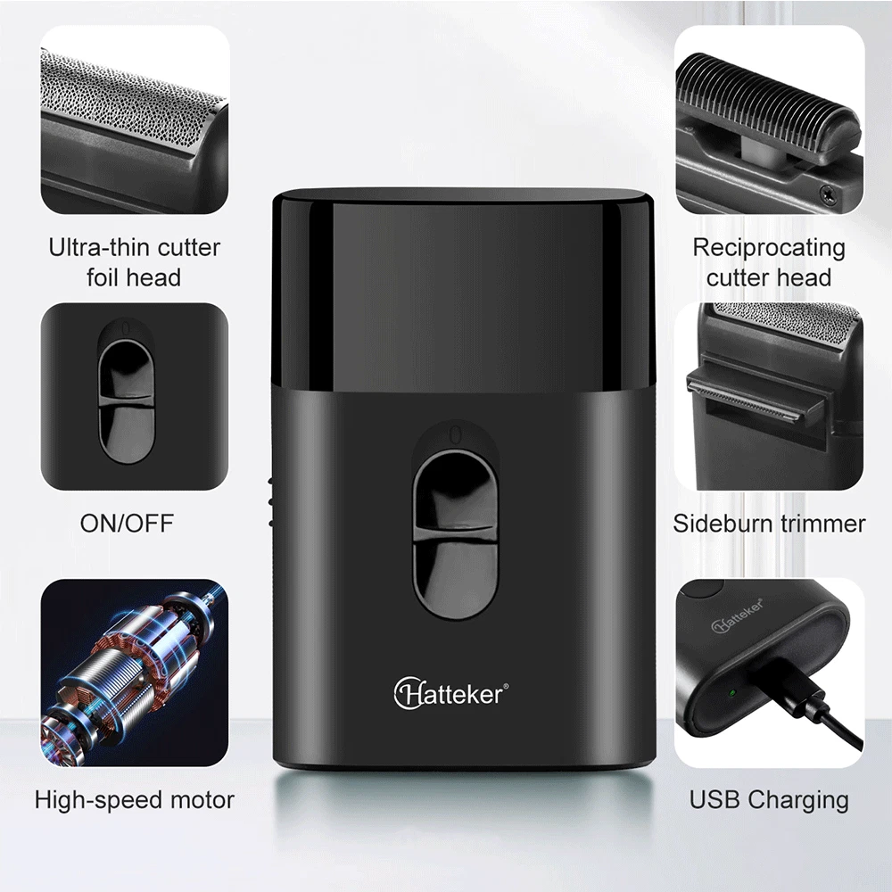 Hatteker Mini Shave Portable Electric Razor For Men's USB Rechargeable Shaver BK