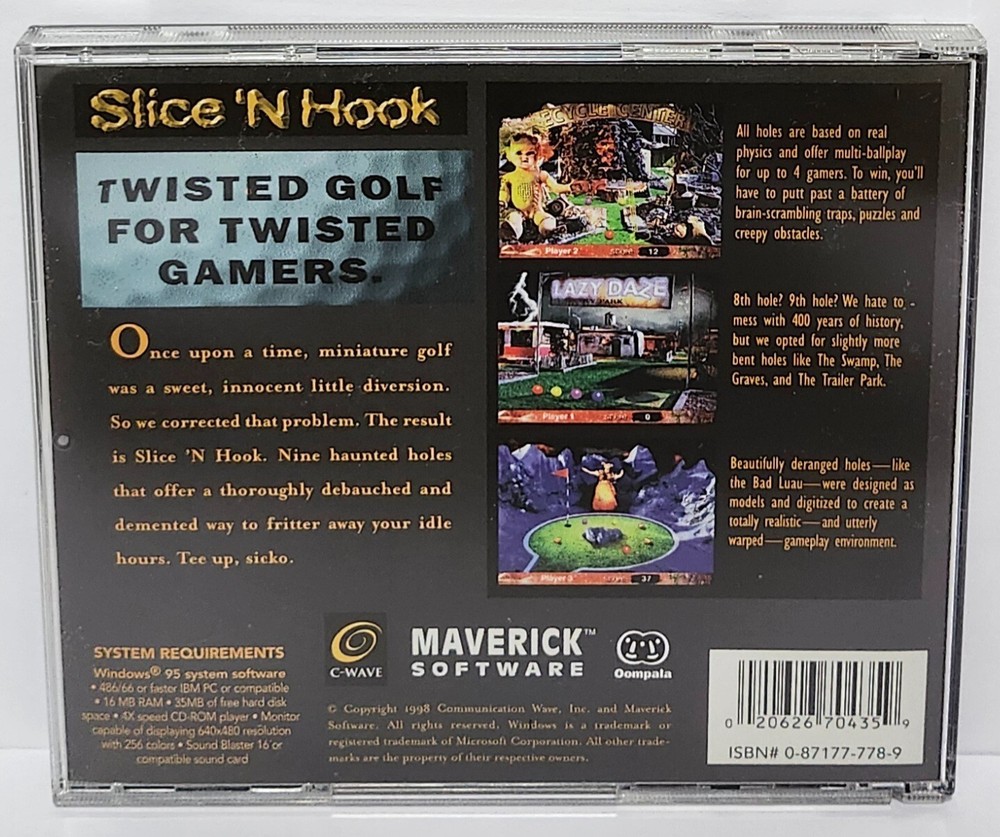What You Will Be Receiving: Slice 'N Hook Haunted Mini Miniature Golf PC 1998 Complete with Manual. Disc is Very Clean. Please see photos for details. Tracking number provided once shipped (Priority) Message for any Questions!