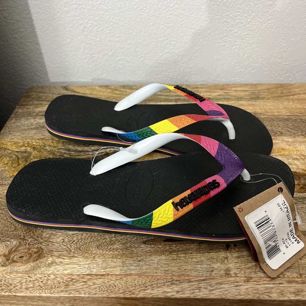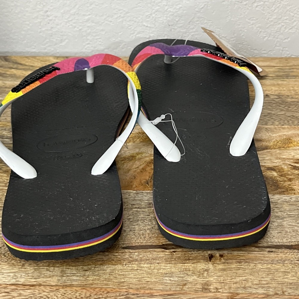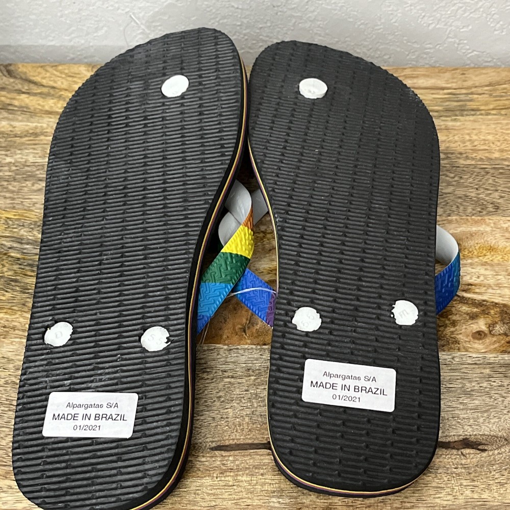 Brand new with tag. Havaians rainbow pride flip flops. These got women’s size 11–12 and men’s size 9-10. Super comfy flip flops. From a smoke-free home. Box S4