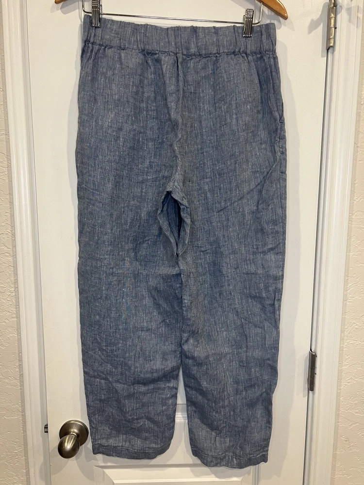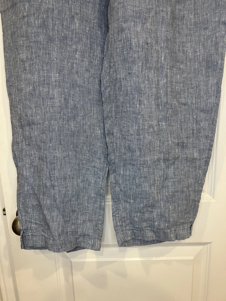 These Haven Well Within Linen Pants in size Medium are a stylish and comfortable choice for various occasions such as travel, casual outings, or workwear. Designed with a high-rise and ankle length, they feature an elastic waist for easy wear and pockets for added convenience. The blue color and solid pattern give off a beachy and bohemian vibe, perfect for summer, fall, or spring. Made from knit linen fabric, these straight-leg pants offer a relaxed fit suitable for regular use.
