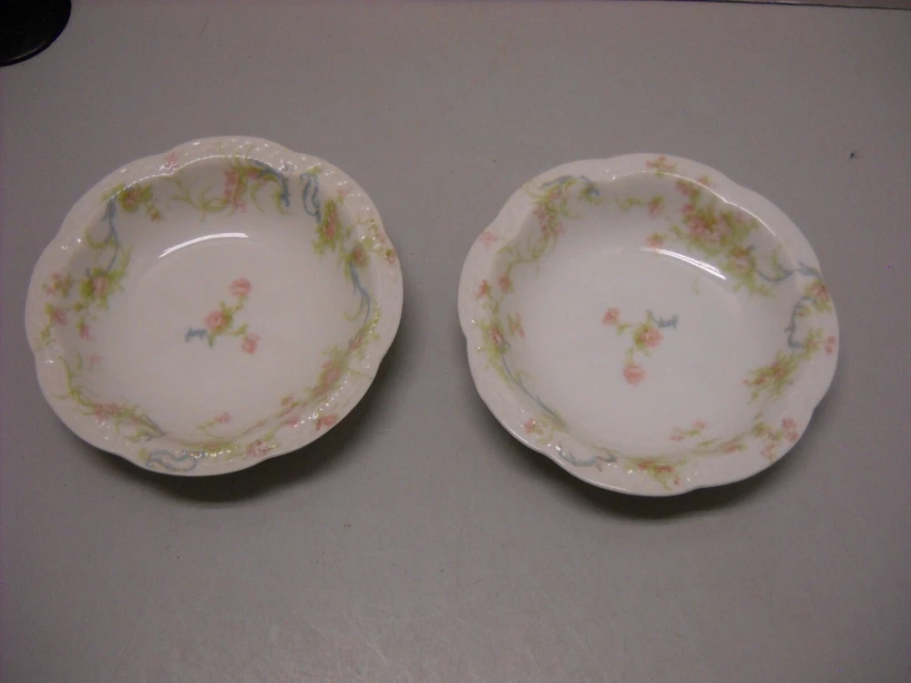you are bidding on Haviland Limoges Princess Fruit Dessert Sauce Bowls Set of 6 This set of six fruit dessert sauce bowls by Haviland Limoges is a must-have for any collector of fine bone china. The bowls feature a delicate floral pattern in shades of pink, and are encircled with a beautiful border. Made in France and part of the Princess product line, these bowls are perfect for all occasions. Crafted with exquisite attention to detail, this set includes bowls that are both decorative and functional. The Haviland Limoges brand is synonymous with elegance and quality, and these bowls are no exception. Whether you're hosting a formal dinner party or enjoying a casual meal at home, these bowls will add a touch of sophistication to your table. Measures 5-1/8" wide See photos for details and ask all questions before purchasing Thank you for shopping in my store. *Free Shipping* Check back regularly as I list items daily. HAPPY BIDDING 11-29-23db