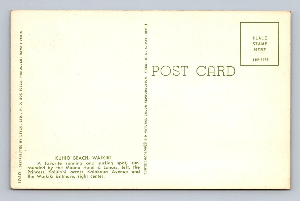 Hawaii HI Waikiki Kuhio Beach Vintage Postcard Standard Souvenir Postal Post PC