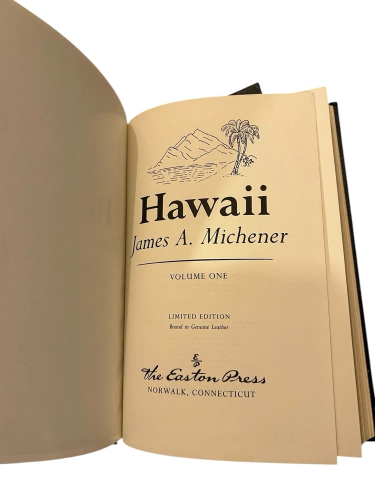 Hawaii by James Michener Volume 1 & 2 Easton Press 1988 LIMITED EDITION Leather Good vintage condition. There are some tiny dots of paint splatter on the back of one volume. Please study pictures carefully before purchasing Feel free to ask us any questions. Thank you for visiting our store! Shlvblck