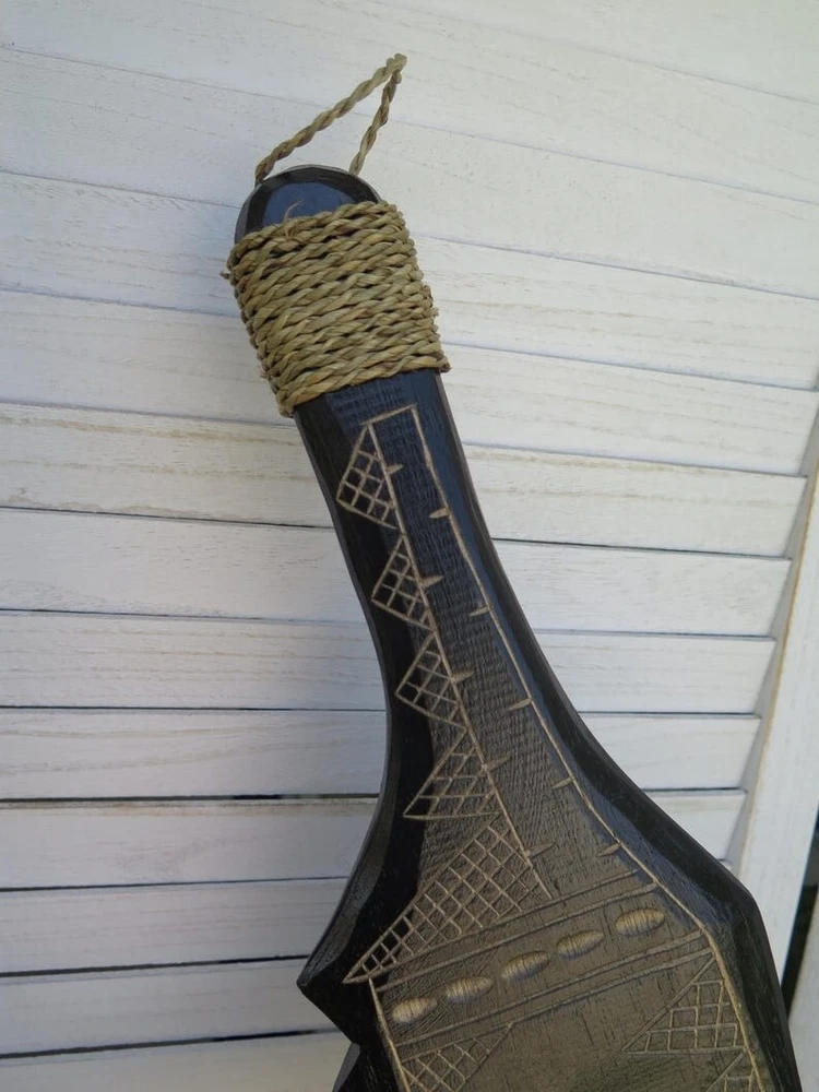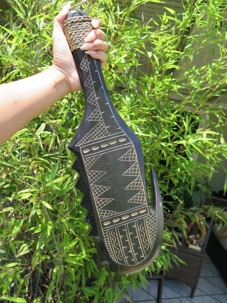 Hawaiian Engraved Hand Made Wall Decor Solid Wood Polynesian Tribal Club Paddle
