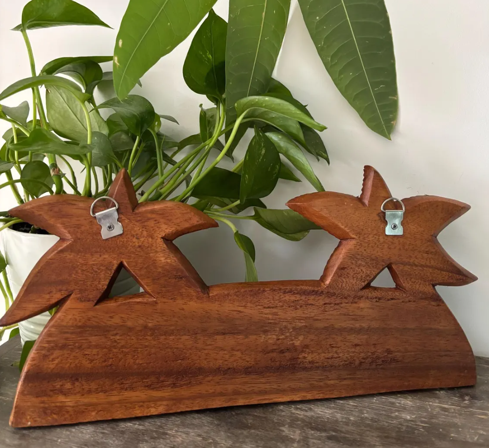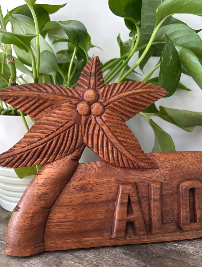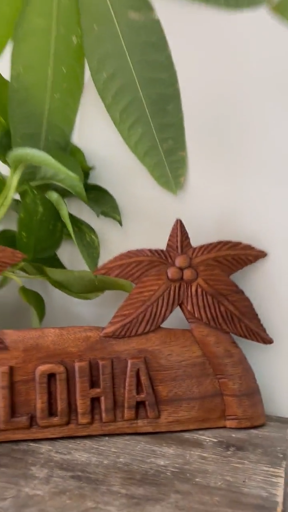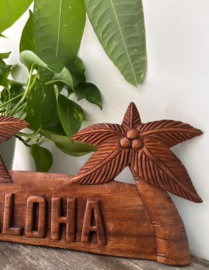 Hawaiian Hand Made Wall Hanging Decor Plaque Wood Carving Sign Palm Tree