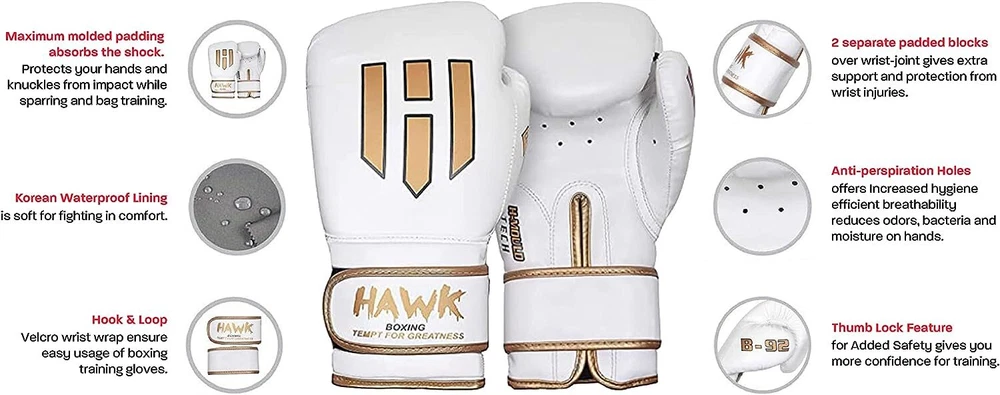 Ask the Seller Shop Our Store Free Tech Support Free Shipping eBay Seller Since 2002 Quality, Reponsive Customer Service Hawk Sports Boxing Gloves for Men and Women with Foam Padding, 16 oz - White List / MSRP : $ 22.55 PRODUCT CONDITION ITEM APPERANCE FUNCTIONALITY Item has been opened and is in the original retail packaging. Learn More Item shows virtually no signs of wear. Learn More Item has been professionally tested and inspected to ensure complete functionality. Learn More ITEM DETAILS Features Hawk Sports Boxing Gloves for Men and Women with Foam Padding for Throwing Knockout Punches with Power and Confidence. Specifications: Perfect Design: Gel Injected & Multi Layered V-Impact Foam Boxing Gloves Reduces the chance of injuring your fists. High Quality and Durable Sparring Gloves. Perfect Design: Gel Injected & Multi Layered V-Impact Foam Boxing Gloves Reduces the chance of injuring your fists. High Quality and Durable Sparring Gloves. Wrist Safety: Extra-thick Supremo-Shock Foam based padding on knuckles of these leather boxing gloves with separate padded block over wrist-joint. Safe from perspiration Holes: These punching bag gloves have a breathable Pinhole Palm that offers Increased Hygiene Efficiency Reduces Offensive Odors, Moisture through your hands. All Purpose: These boxing gloves are Ideal for kickboxing, sparring, heavy bag workouts, and mitt work | Hook & Loop Velcro wrist strap for easy usage of boxing training gloves. American Sizing: Hawk boxing gloves come in various sizes 8oz for kids boxing gloves. 10oz & 12oz ideal for training, bag and mitt work, whereas 14oz & 16oz is ideal for sparring. For further size guidance please look at the size chart in the pictures. Friendly on every type of skin and is available in Women boxing gloves sizes and with the wide range of Boxing Gloves for men. Technical Details: Brand: Hawk Sports Size: 16 oz Color: White Material: Leather Glove Type: Training Closure Type: Hook and Loop Age Range (Description): Kid Product Dimensions: 14.61"L x 9.21"W Item Package Dimensions L x W x H: 14.68 x 8.39 x 5.08 inches Package Weight: 0.95 Kilograms Suggested Users: unisex-adult Manufacturer: Hawk Sports Part Number: KS-NSHN-MKBP Hawk Boxing Gloves for Men & Women Training Pro Punching Heavy Bag Mitts MMA Muay Thai Sparring Kickboxing Gloves (White, 16 oz) STORE POLICIES Shipping: All orders ship on the next business day. TradePort uses the most cost and time-efficient method for each item shipped on an individual basis. Expedited shipping available in certain instances – please contact the seller for more info. Returns: All TradePort purchases are covered by a thirty-day return policy. Free returns are available in cases where a product is not as described – all other returns require the buyer to purchase their own return label. TradePort charges a refund deduction fee for any item that is returned in a condition different from how it was sold. Warranty : TradePort does NOT advertise or make any guarantees regarding manufacturer warranty status. Warranty terms and conditions may vary by product or manufacturer. Warranty work will be performed solely at the manufacturer's discretion. For additional warranty coverage beyond TradePort's 30-day limited warranty and/or manufacturer warranty, SquareTrade offers 2-5 year Service Plan coverage for NEW electronics and 1-2 year Service Plan coverage for REFURBISHED and USED electronics. POPULAR CATEGORIES Cameras & Photo Cell Phones Computers & Tablets Home & Garden Sporting Goods Home Audio