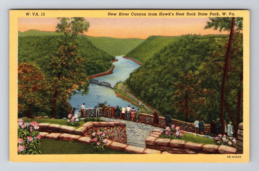 Region: West Virginia Subject: Cities & Towns Country: USA Original/Licensed Reprint: Original Theme: Cities & Towns Postage Condition: See Image Era: Linen Type: Printed (Lithograph) Country/Region of Manufacture: Unknown City: Hawk's Nest Rock State Park Unit of Sale: Single Unit