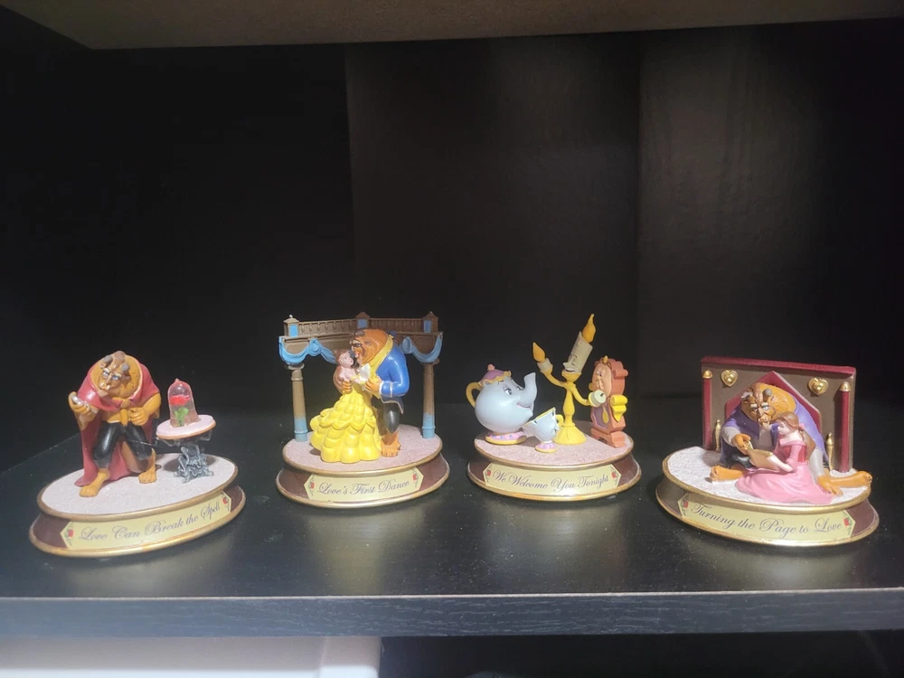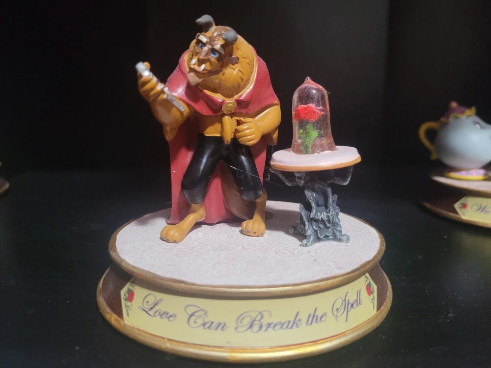 This exquisite Hawthorn Village Disney Power of True Love collection is a must-have for any fan of Beauty and the Beast. The collection features Belle and the Beast in various poses, capturing their timeless romance. Each figurine is crafted with attention to detail and is expertly painted to bring out the characters' true essence. The 4 pieces are not a matched set and Lumiere has a small crack in one arm. So, the arm moves (it shouldn't) but it is still attached. A dab of superglue would stop the movement completely.