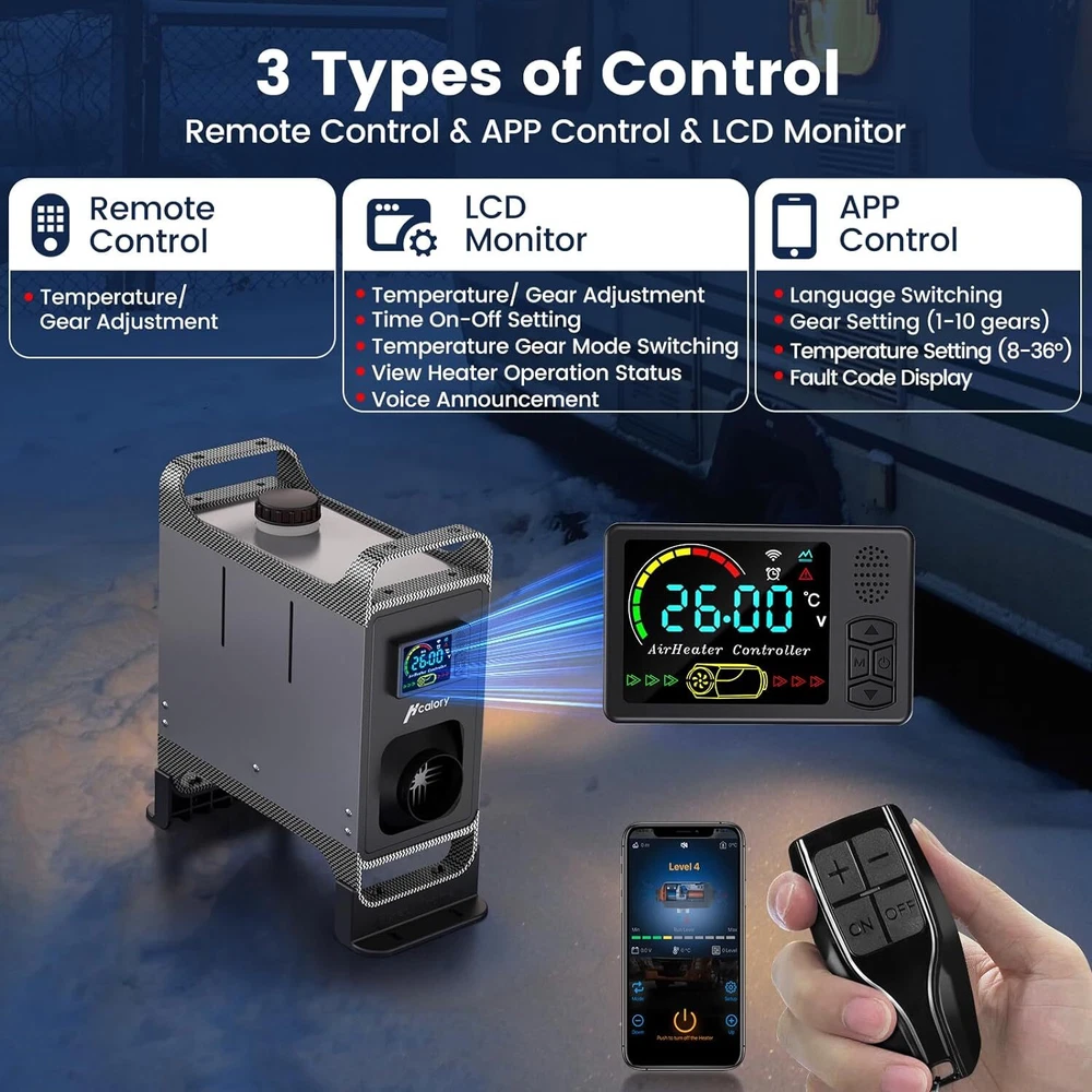 Hcalory® 8KW 12V 24V Diesel Air Heater W/ Adapter & bluetooth For RV Car SUV