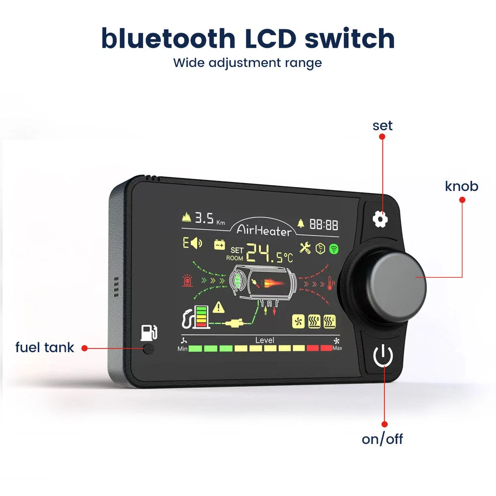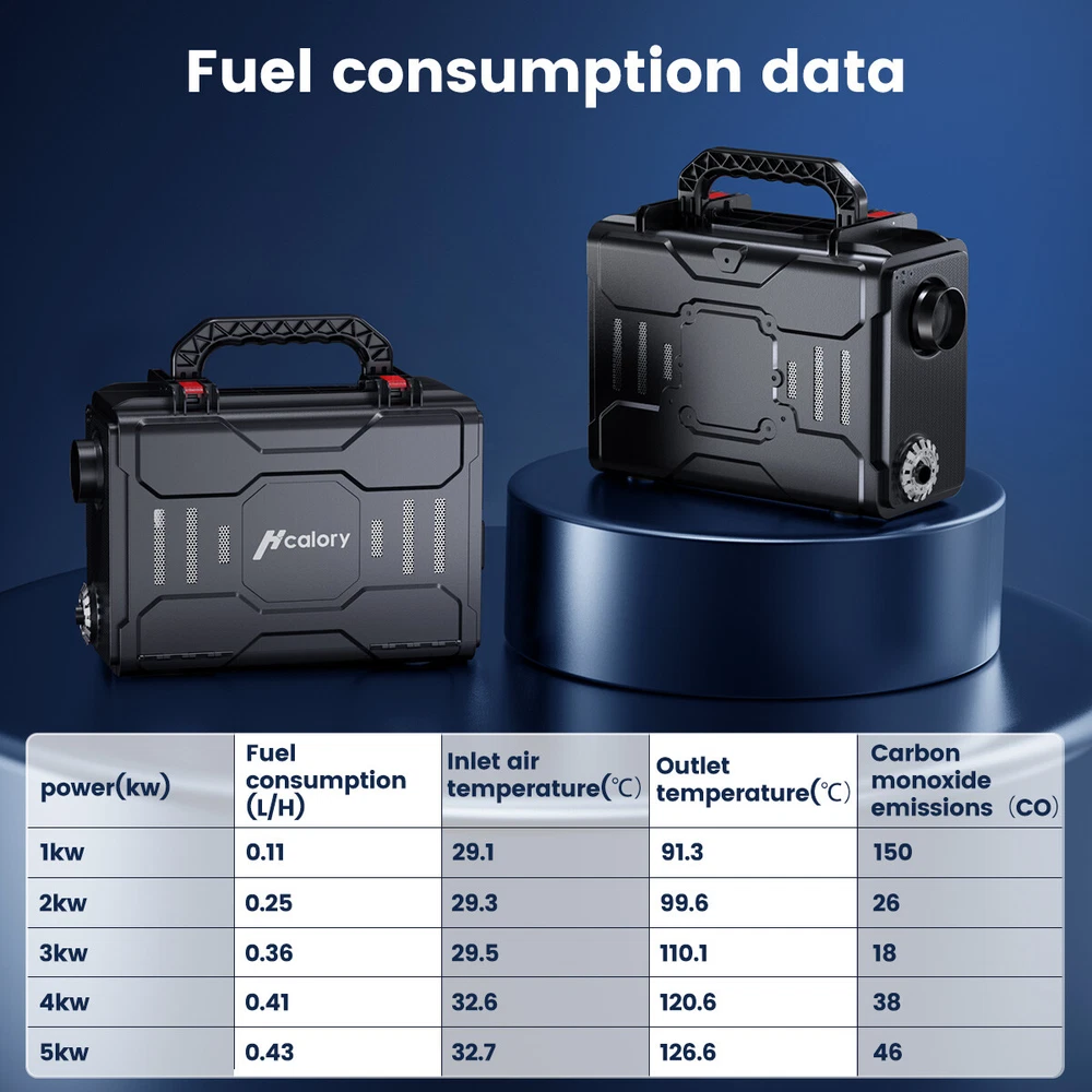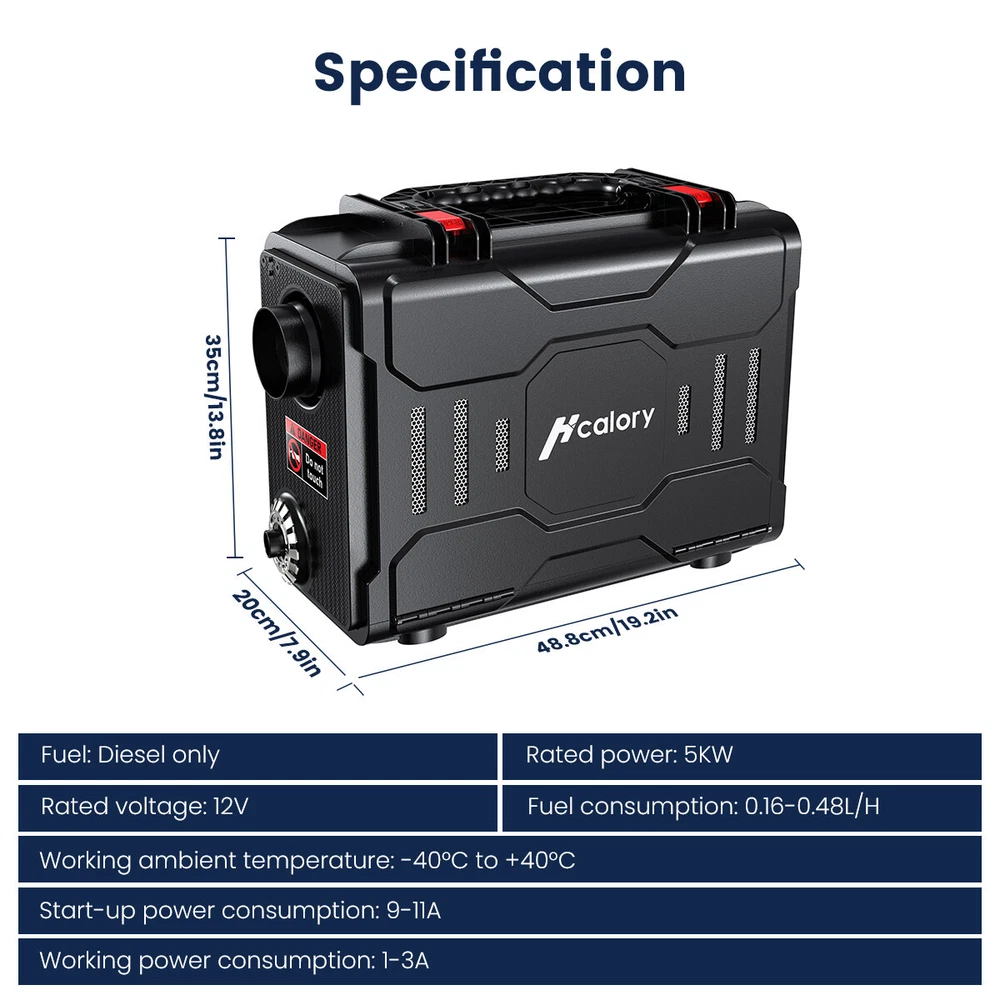 Similar Items Description Features: 1. Suitable for all 12V Universal diesel vehicles; it can be used for cab heating of various vehicles such as trucks, vans, battery cars, etc., to eliminate window frost; 2. 5KW power adjustable to meet different needs; 3. Easy to Carry & Install Designed as a suitcase, can be easy to carry in outdoors. Compact structure, easy to install and disassemble. 5. Environmental products, low emissions, low fuel consumption; 6. The volatilization technology, the fuel is heated and evaporated into gas through the ceramic spark plug, the ignition is fast and the combustion is sufficient; 7. bluetooth app remote switch (optional); 8.The use of advanced automatic control technology, with abnormal operating conditions reliable; 9.Technology Volatile, by ceramic ignition socket the fuel heating evaporates into gas, rapid ignition, complete combustion; 10.Fuel, electricity, temperature can be set arbitrarily. Smarter - Download the "airheaterble" App, available for iOS and Android devices, which enables user to remotely control t he heater via Bluetooth. You can preheat and defrost the outdoor vehicle in advance without leaving your home Specifications: Brand:Hcalory Type:Air Diesel Heater Model:bluetooth model Color:Black Configuration fuel tank: 5L Rated power: 5KW Rated voltage: 12V Fuel consumption: 0.1 liters - 0.35 liters/hour Remote control effective distance: 100 meters Radiator working temperature: -40~+50°C Operating temperature of oil pump: -40~+40°C Packaged included: 1 x Car heater 1 x Remote control 1 x Silencer 1 x Tubing 1 x Harness 1 x Wind head 1 x Air Filter 1 x Exhaust pipe 1 x Inlet air pipe 1 x Outlet air pipe 1 x Fuel Tank 1 set Screw accessory kit Note: 1. Please allow 0.5-1 cm differences due to manual measurement. 2. Due to the light and screen difference, the item's color may be slightly different from the pictures. #divSKUDetail2 Detail Image Payment 1.We accept Payoneer、PayPal、Mastercard、VISA、Google Pay 、American Express etc. 2.All major credit cards are accepted through secure payment processor. 3.Payment must be received within 7 business days of auction closing. 4.We ship to your eBay or payment address. Please make sure your eBay and payment address is correct before you pay. Shipping 1.We ship to your eBay or Paypal address. Please make sure your eBay and Paypal address is correct before you pay. 2.Items will be shipped within 1-3 business day when we received payment. 3.Delivery time depends on destination and other factors;