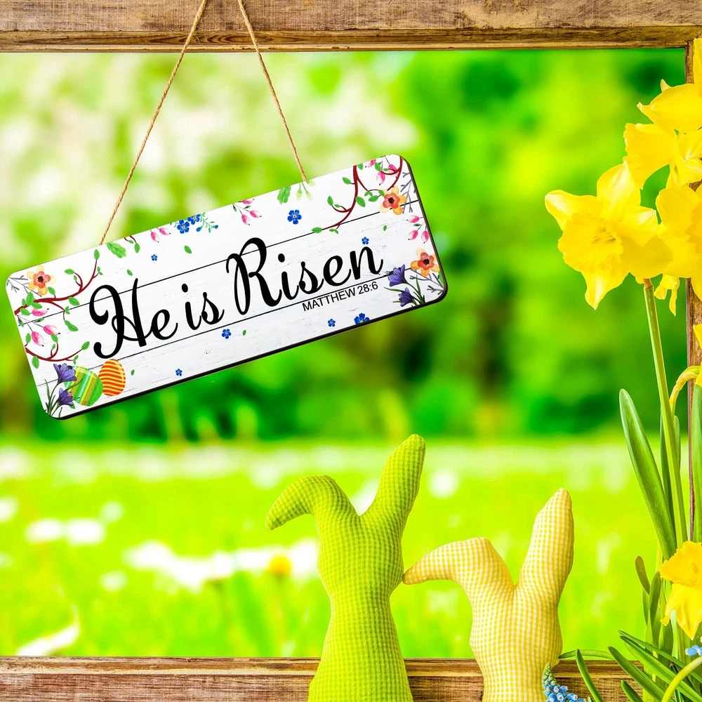 He Is Risen Sign 2 Pieces Easter Hanging Door Decorations Wood Easter Door Hanger Easter Religious Sign Easter Blessings Wood Hanging Plaque for Wall Wreaths Spring Home Front Door Wall Decor Product Details Brand: Yookeer Material: Wood Theme: Family Mounting Type: Door Mount,Wall Mount Product Dimensions: 11.8"L x 5"W Shape: Rectangular Style: Sturdy Product Dimensions: 11.81 x 5 x 0.01 inches Item Weight: 10.5 ounces Manufacturer: Yookeer Country of Origin: China Item model number: KY-Yookeer-1666 Printed Inspiring Words: the easter religious decorations are printed with the letter [He Is Risen], [Easter Blessings] that meaning hope, happiness, new life is coming, which are in line with the theme of Easter Easter Elements Design: the wood Easter decorations are embellished with Easter egg, blooming grass flowers, and cross, using them as decorations will brighten the intense festival atmosphere of your home and party Basic Information: these outside Easter decorations are made of wood, which are sturdy, firm, not easy to flake off, rot or break, offering you long time application; They measure approx. 30 x 12.7 x 0.6 cm/ 11.8 x 5 x 0.24 inches, allowing you to hang them in the places you want as attractive decors Easy to Install: the wooden Easter door hangers come with ropes, you can just hang them on the door wall or other surface, which will be a highlight to the whole environment, leaving a deep impression on your guests Package Contains: you will receive 2 different styles of Wooden easter wall decors, which will meet your holiday using and replacement demands, making your easter party more exciting and impressive in seconds Features: The rustic Easter wall decorations are about 11.8 x 5 x 0.24 inches, lightweight, and proper size allows you to hang them on many places, and the worry that they may fall off is unnecessary, therefore you can apply them for home or party adornment with confidence. These Easter wall hanging plaque signs are printed with many words related to Easter, a nice way for your families to welcome the approaching of the spring, which can not only work as decorations but also convey your wishes and greetings. Specifications: Material: wood Color: as shown in the picture Size: approx. 11.8 x 5 x 0.24 inches (L x W x T) Package includes: 2 x Easter wall hanging plaque signs Note: Manual measurement, please allow slight errors on size. The colors may exist slight differences due to different screen displays. Avoid storing them in wet condition. The words on the product are only decorative and are not applied as trademarks.