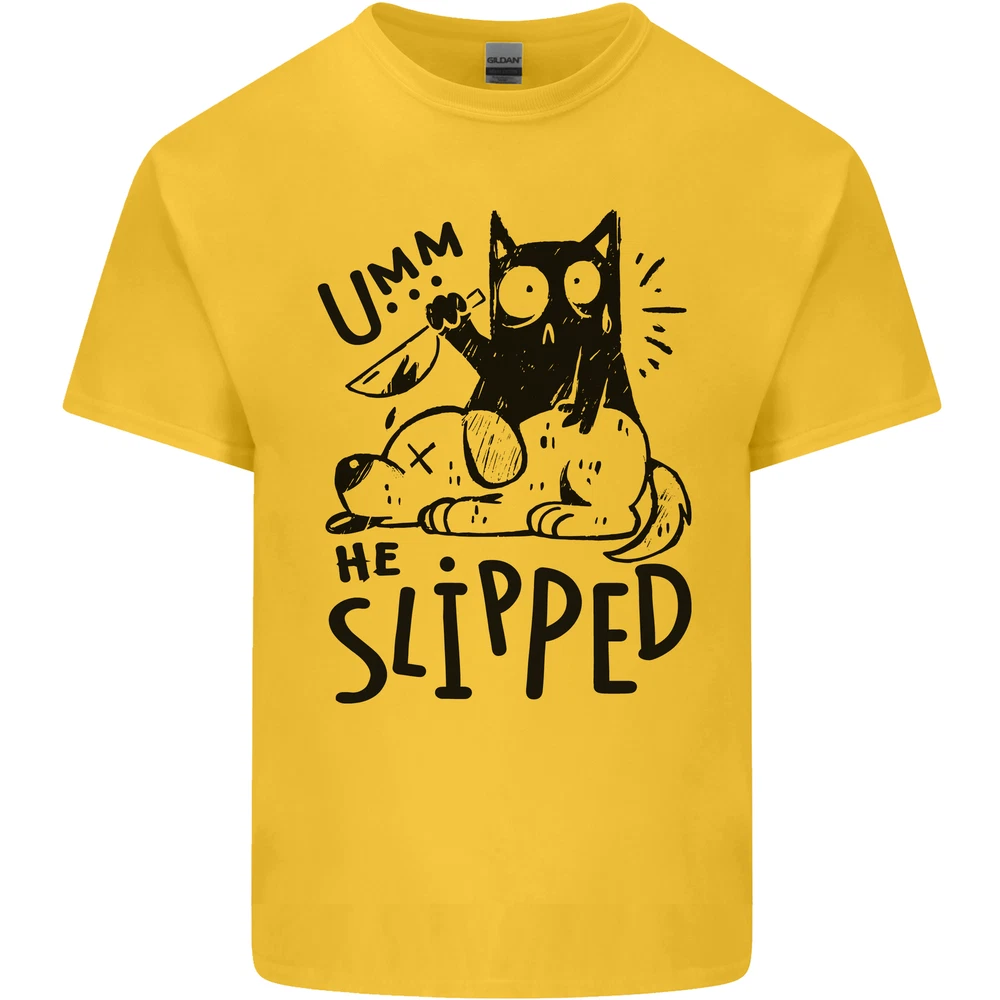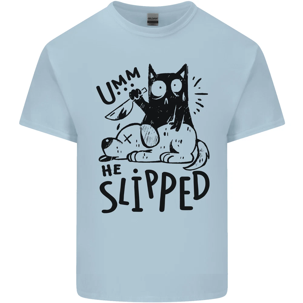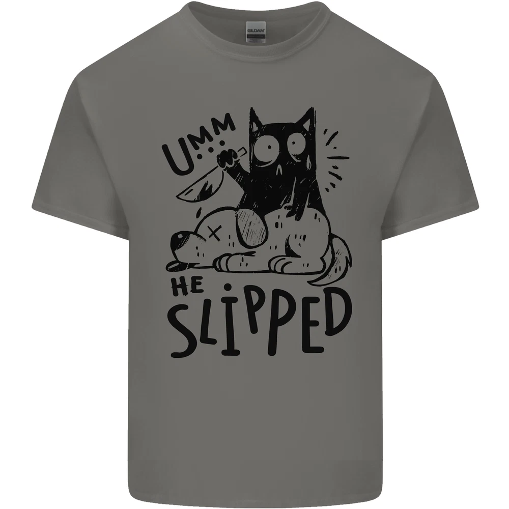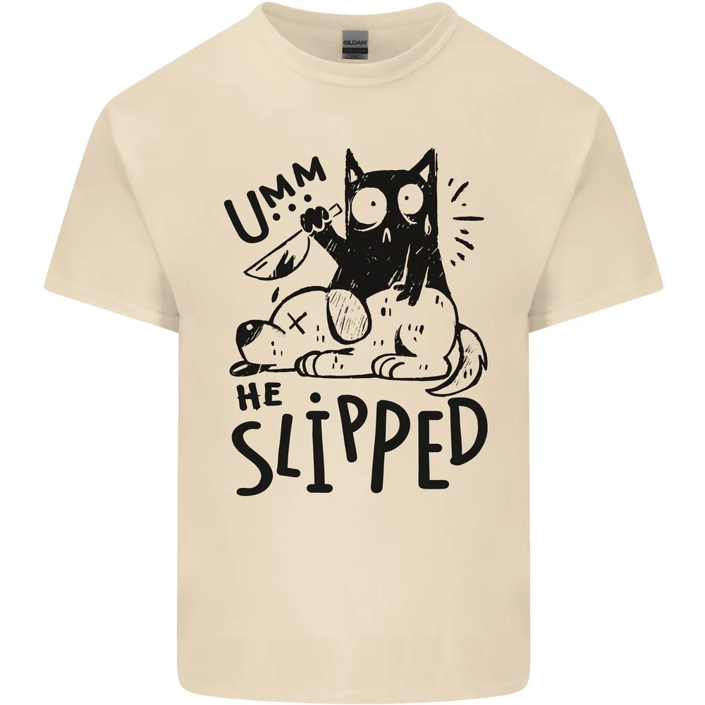 He Slipped a Cat Murdering a Dog Funny Mens Cotton T-Shirt Tee Top