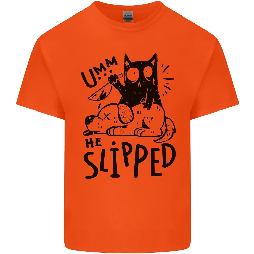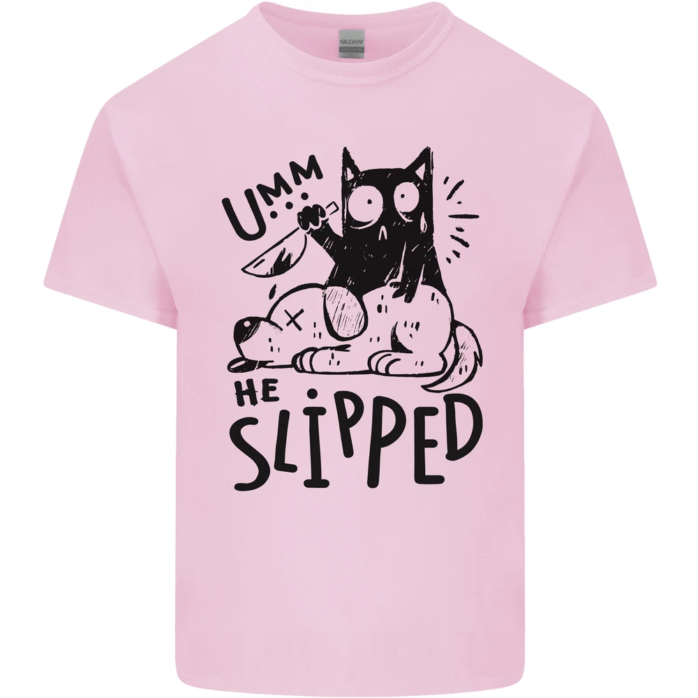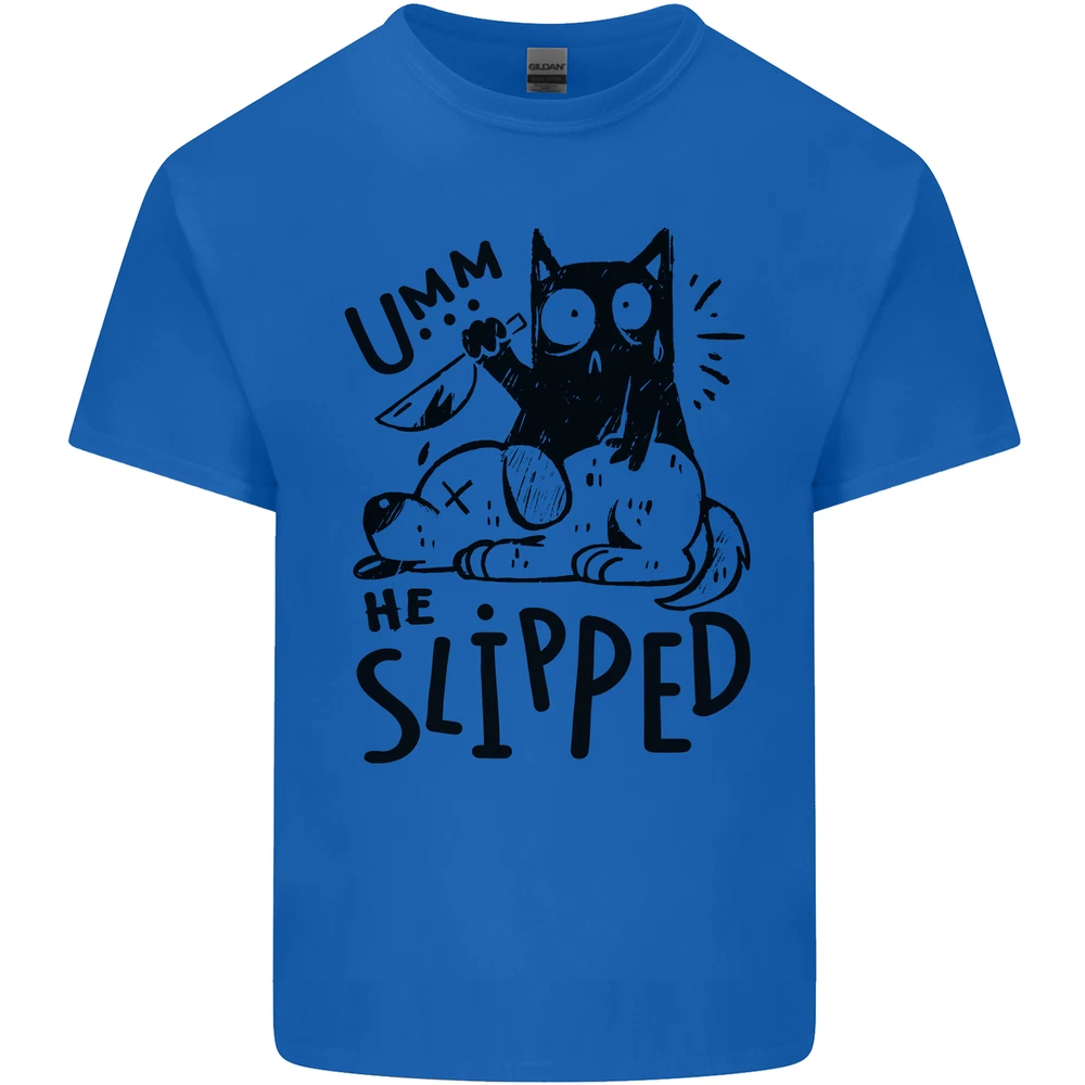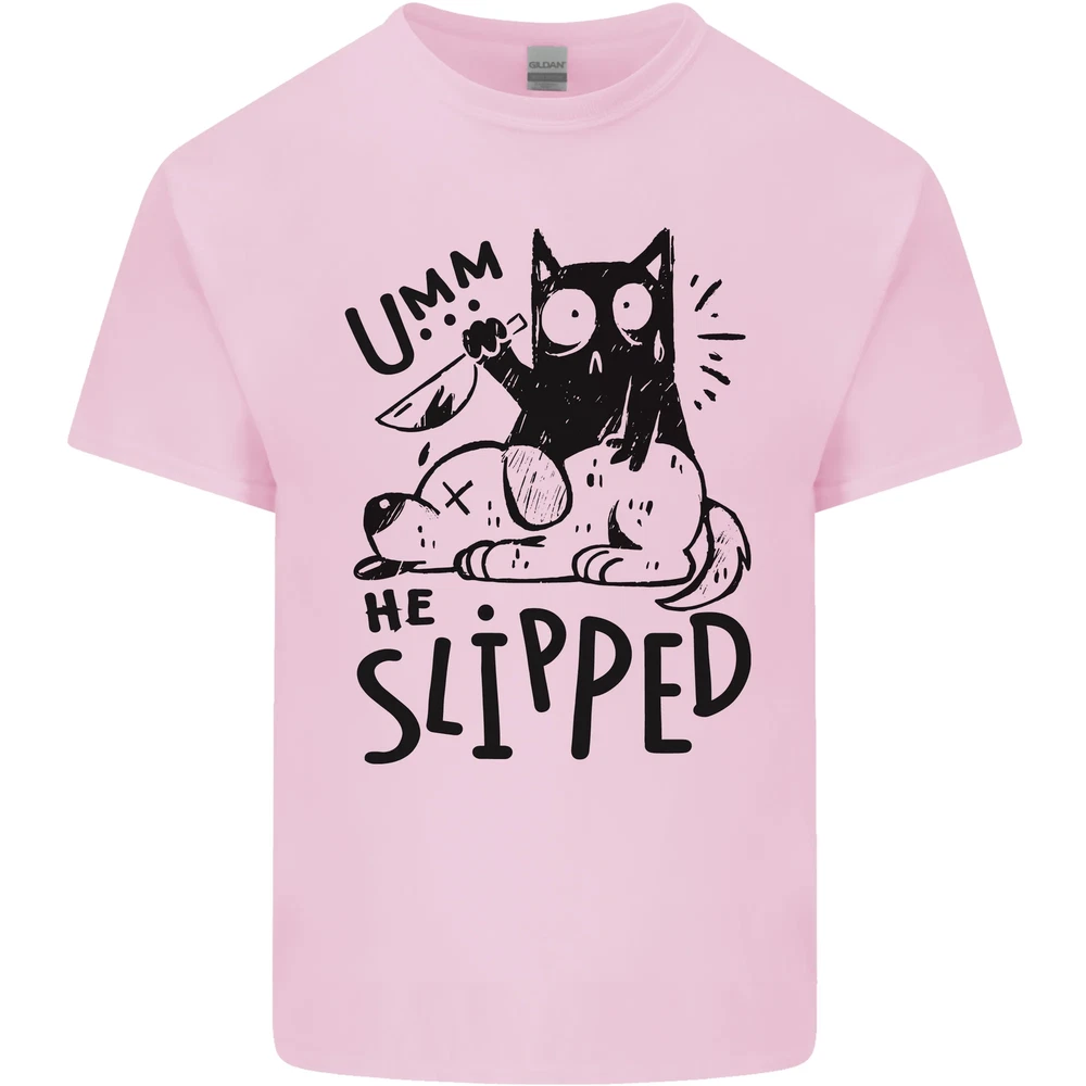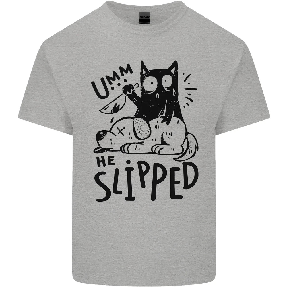 He Slipped a Cat Murdering a Dog Funny Mens Cotton T-Shirt Tee Top