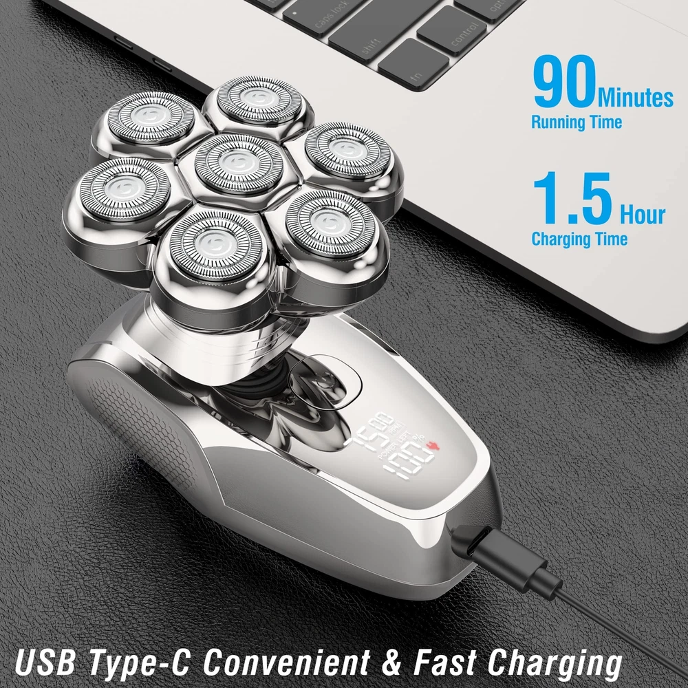 Replacement Shaving Heads for AF-809 Series Electric Rotary Shavers,Electric Razor Replacement Heads Assembly Easy to Replace and Clean Compatibility: This replacement heads assembly specifically ONLY for the brand AF-809 series electric rotary shavers; Note: This replacement heads cannot be used with other brands of electric shavers Double-track Cutter Net Design: The High-performance 3D floating cutter heads with double-track ultra thin cutter net and self-sharpening steel blades design, gives you a comfortable and close shaving experience at any time High Quality Materials: Produced from precision stainless steel, fine cutting and easy capturing Easy to use : This replacement heads assembly is easy to replace and whole body washable for easy cleaning Recommendation: For maximum shaving performance, it is recommended to replace your shaving unit once every 12 months Please note: 1. After replacing the shaving heads, please ensure that the shaving head assembly and the shaver body are fully riveted to avoid damage to the shaving heads. 2. If you find that the shaving head is damaged, please stop using it and replace it with a new one. [ A Smooth and Close Shave ] - Electric 7D rotary head shaver with independent 7 floating heads follows every contours of your head and face, even on the neck and jaw line, giving you a comfortable and gentle shaving experience [ Waterproof and Wet & Dry Shave ] - electric bald head shavers is 100% waterproof and whole body washable, you can shave dry or wet even in the shower. For a more comfortable shaving experience we recommend that you use foam or gels when shaving. For efficient cleaning after each shaving please rinse the shaver heads under the tap [ Type-C Fast Charging ] - Use a universal USB Type-C cable to charge the men's head shaver, Convenient for you to charge your shaver anytime, anywhere. It can provide up to 90 minutes shaving time with 1.5 hours fully charged [ LCD Display and Travel lock ] - The smart LED display indicates current motor speed, battery level and charging status. Keeps you informed of the currently available shaving time and reminds you to recharge the shaver in time when the battery is running low. [ Powerful and Efficient ] - The latest upgraded motor provides more power and support optional 2 speeds (7000/7500RPM), combined with 7 independent shaving heads can greatly improve shaving efficiency, so that you can shave your head and face smoothly and efficiently, saving you time