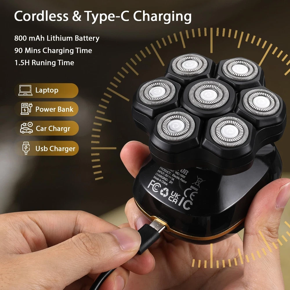 Head Shavers, Upgrade 6-in-1 Electric Head Shavers for Bald Men, Wet/Dry LED Display Rechargeable 7D Rotary Shaver Grooming Kit with Type-C Charge, Black Product Details Color: Black Brand: SHPAVVER MPN: 1 UPC: 796520879751 EAN: 0796520879751 Brand: SHPAVVER Recommended Uses For Product: Scalp, Face Special Feature: Rechargeable, Dry Shave, Wet, Floating Head, Portable, Waterproof, Detachable Head, Ergonomic Design Power Source: Battery Powered Model Name: SHPAVVER Upgrade 7D 6-in-1 Electric Head Shaver Product Dimensions : 0.4 x 0.4 x 0.4 inches; 14.89 ounces Item model number : 1 Date First Available : March 6, 2024 Manufacturer : SHPAVVER Advanced Detachable Shaving Head: Our head shaver is crafted for men who prefer a bald, clean-shaven look but are weary of the hassle that comes with razors and blades. The new upgraded detachable design makes this head shaver incredibly easy to clean. Simply detach the entire blade, wash under water, and store conveniently. Maintain your head shaver in peak condition by regularly cleaning out trapped hairs Efficient & Gentle 7D Floating Head Shaver: Take advantage of our head shaver's ultra-flexible 7D pivoting blade design that enlarges the shaving area and reduces the time you spend shaving. This head shaver for men offers 7D precision and rounded edges that glide effortlessly over the skin. Experience a smooth and close shave with greater comfort and efficiency Versatile Wet & Dry Shaving Experience: Equipped with IPX6 waterproof technology, our head shaver for bald men caters to both wet and dry shaving needs. Use foam or water for a comfortable shaving experience. This electric head shaver allows you to complete your grooming tasks effortlessly, even while showering Fast Type-C Charging & Intelligent LED Display: This head shaver for men offers a robust 100 minutes of shaving time after just 1.5 hours of fast charging. Stay informed about your power levels with the LED display, ensuring you never run out of charge. Use various charging options like laptops, cars, and power banks to keep your head shaver ready for action, whether you're at home or on the go 6-IN-1 Comprehensive Razor Head Set: Our head shaver for bald men is a powerful, multifunctional grooming tool equipped with 6 shaving heads: smooth texture, hair trimmer, hair trimmer combs(3/5/7mm), nose hair trimmer, massage brush, and cleaning brush. This head shaver for men can meet all your daily grooming needs and is also the perfect birthday and holiday gift idea for your husband Satisfactory Service : If you receive the wrong product or defective product or are unhappy with its use, please feel free to contact us