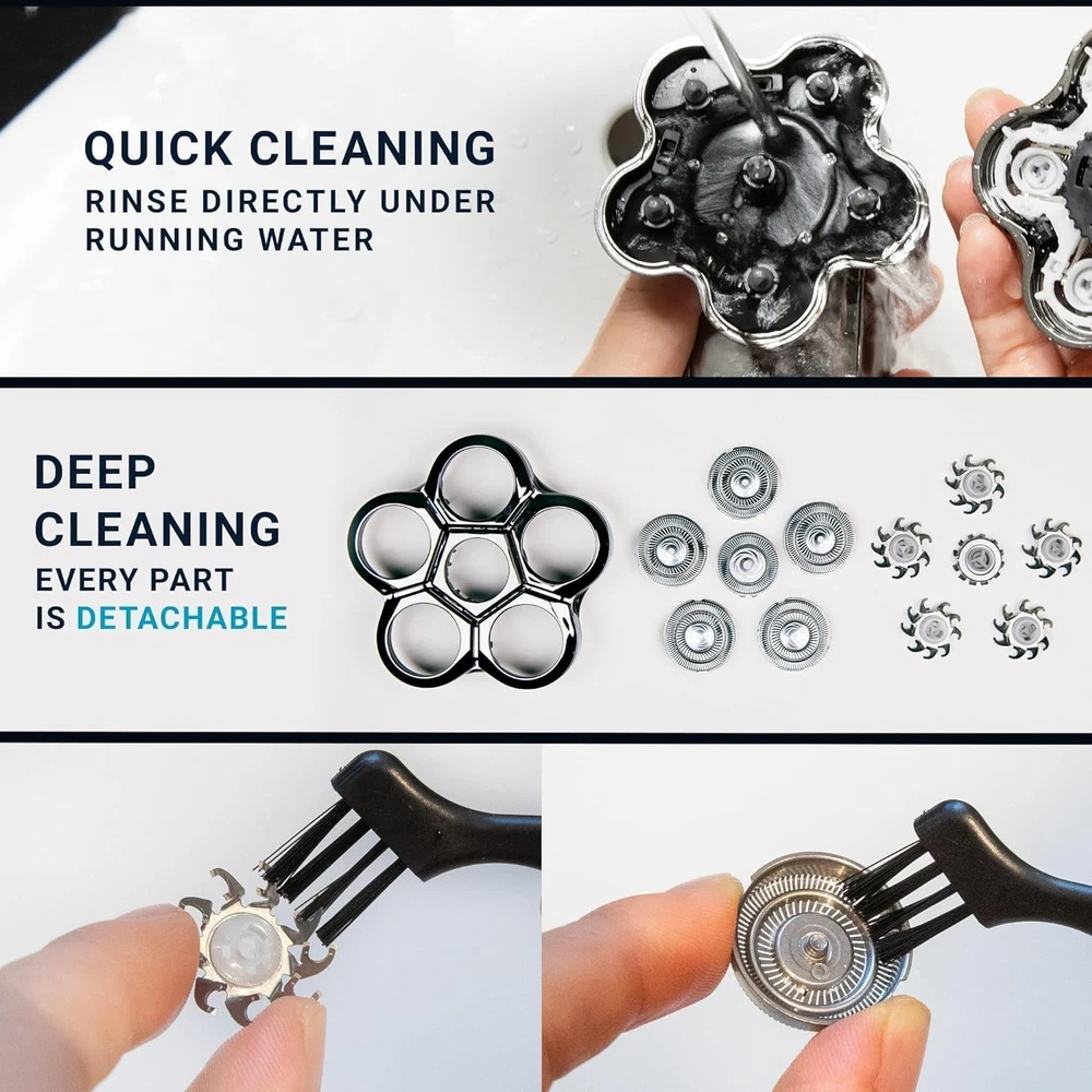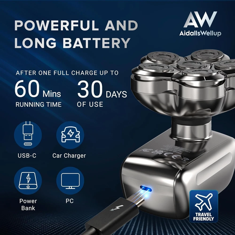 About this item NBC select recommended the best overall head shavers for bald men in 2023. Experience a redefined shaving journey with this bald head shavers for men. Unmatched Excellence: Our electric head shavers boast superior performance, stability, and a special-designed grip. It provides easier control, smoother operation, and a faster, closer shaving. Precision 6D Veneer Head: Experience our 6D floating head shaver, capturing up to 4 days of hair growth with remarkable accuracy. Achieve a flawlessly groomed look with unparalleled precision and ease Intelligent Anti-Pinch System: The smart sensor in our head shaver monitors battery status, ensuring stable power even in low-power situations. Effectively prevent hair pinching during operation. Effortless Washability: Our head shavers for men features a detachable blade assembly, offering both quick rinsing for immediate cleanliness and the option to disassemble each part for a deep clean.