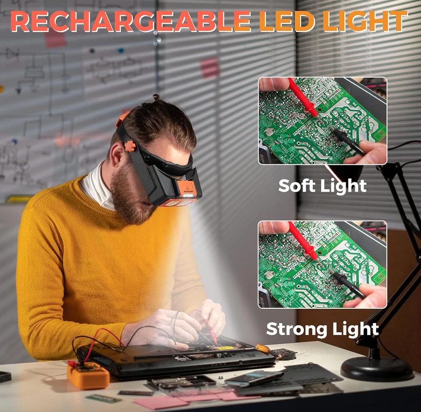 Headband Magnifier with Light Jeweler Magnifying Glass Loupe Visor Optivisor