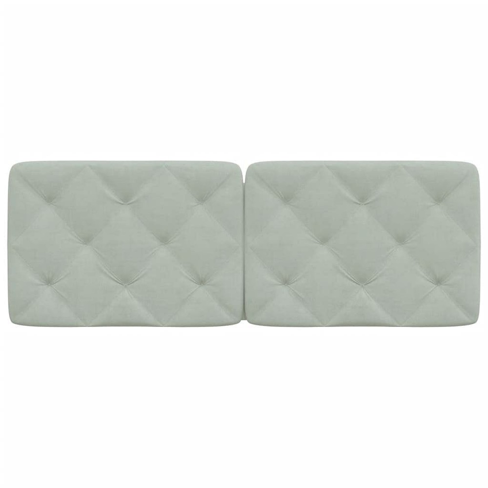 Size: 54 in This headboard cushion not only perks up your bedroom's look but also gives you brilliant comfort when you're sitting. It's got a timeless light gray velvet finish that fits in with loads of bedroom styles and has a soft, welcoming feel-that's just right for leaning against while you read or binge your fave shows. Luxurious Material: Made from 100% soft polyester velvet, this cushion feels lovely against your skin. The light gray color gives it a modern vibe, making it a standout feature in any traditional bedroom. Removable Covers: The cushion comes with zippered covers that you can easily take off for cleaning. This way, you'll keep it looking fresh without much hassle. Wall-Mounted Convenience: Fixed to the wall, this cushion is perfect for keeping your room tidy. Its design helps maximize space in smaller bedrooms. Ideal for Relaxation: It's perfect for reading or watching TV, providing the back support you need while enhancing your relaxation vibes. Generous Dimensions: At 54 in long, this cushion gives you plenty of room to lean back comfortably, with a height of 18.9 in and just 2.4 in thick, it's an ideal fit behind standard beds. Color: Light Gray Shape: Rectangular Material: Fabric Velvet Indoor/Outdoor: Indoor Only Cover Included: Yes Room: Bedroom Maximum Number of People: 1 Mounting Included: Yes Dimensions: 2.4 x 54.7 x 18.9 in (W x L x H) Weight: 3.97 lbs Swings: No Delivery Contains: Head cushion only Assembly Required: Yes Recommended Number of People for Assembly: 1