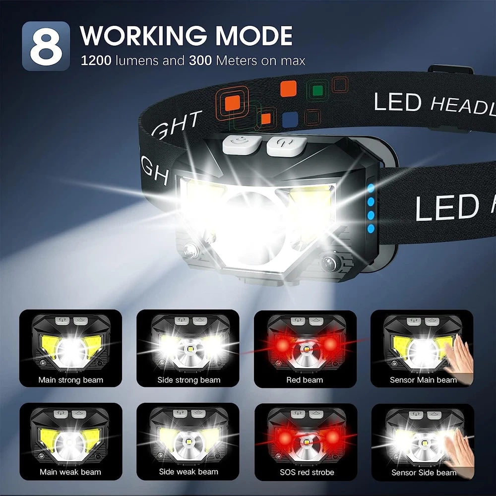Headlamp Flashlight 1200 Lumen LED Rechargeable Headlight White Red Light 2PCS