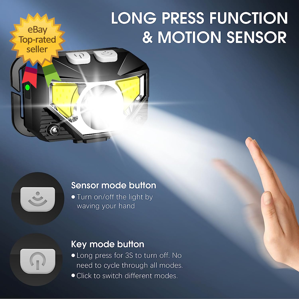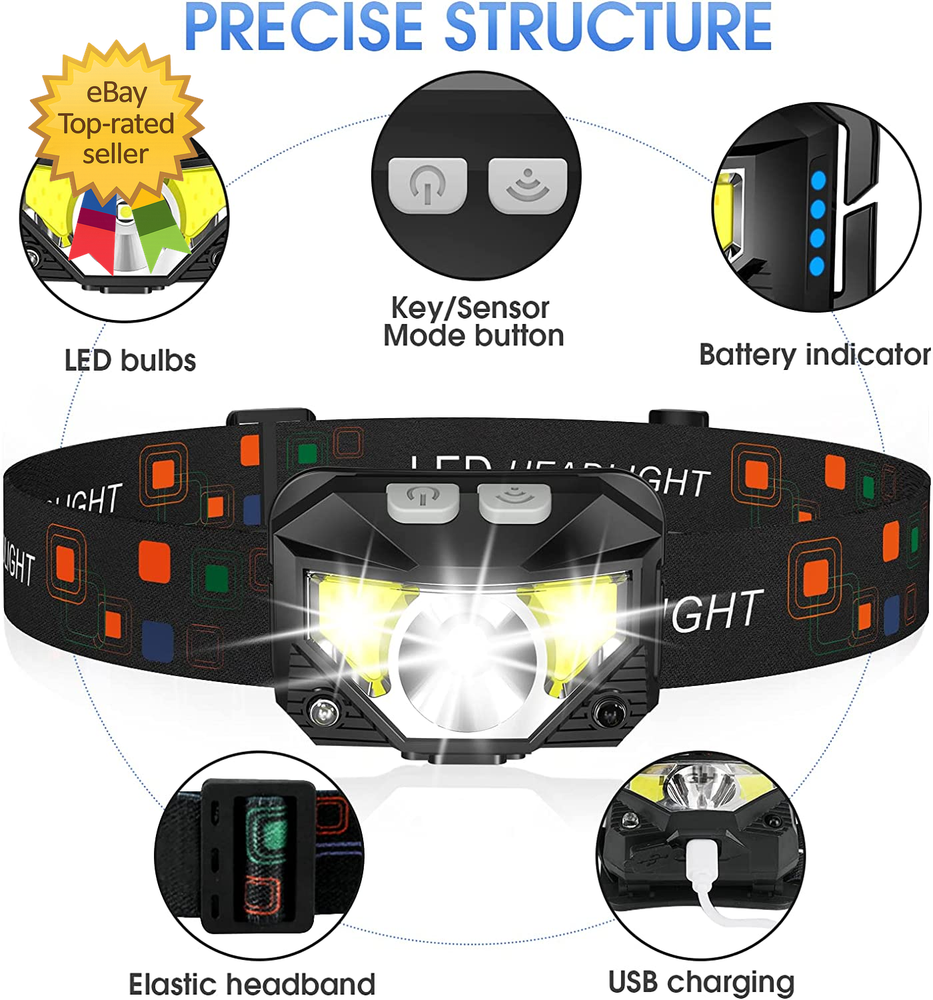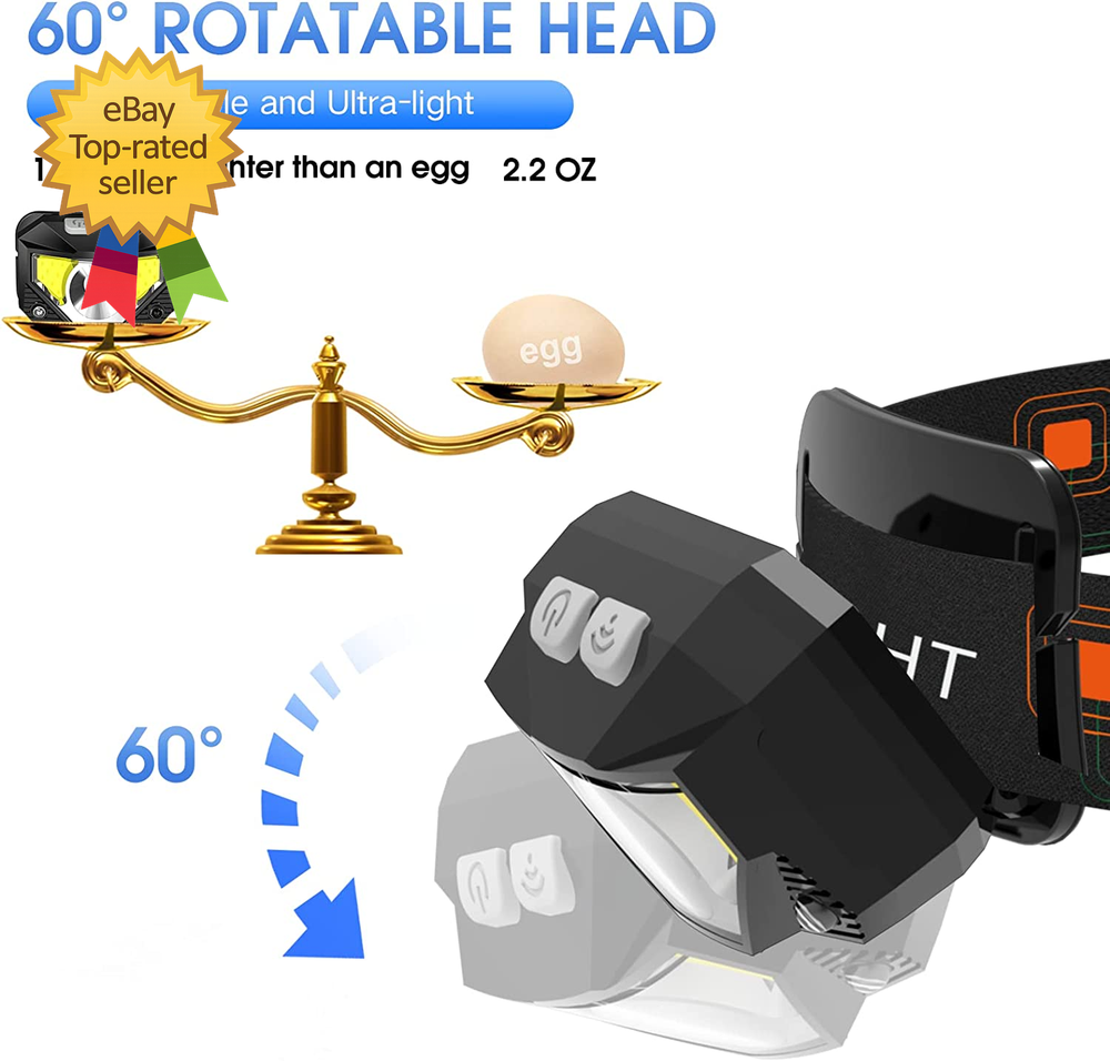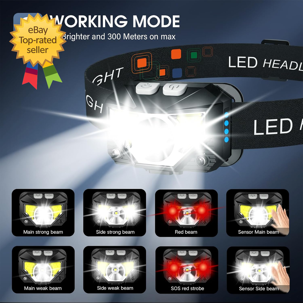 Store New Arrivals Add to Favorite View Feedback Contact Headlamp Flashlight Lumen Ultra Light Bright LED Rechargeable Headlight with White Description Finish types Anodized Size 2 Packs Long Press Function and Motion Sensor: Unlike the old version, LHKNL headlamp has added a long press function. Just hold the key mode button for 3 seconds to turn off from any lighting mode—no need to cycle through all modes. It also added motion sensor mode, you can easily turn the lights ON or OFF by waving your hand, which is more convenient and avoids soiling the headlamp when your hands are dirty Super Bright and Rechargeable: The headlamp flashlight camping essentials uses class-leading LED chips that will provide 2X brighter high lumens, easily light up an entire tent and road. It has powerful rated 1500mAh built-in rechargeable battery, which can be able to charge and turn on the lights at the same time. No need to wait for full charge or replace the battery. And the battery indicator will help you master battery usage. Last for 4-10 hours when fully charged Ultra-light and Adjustable: The hand-free headlamp is only weight 1.87 OZ, comfortable and lightweight. The lamp head can be rotated 60° and tightly fixed to avoid shaking and sliding when running. The head flashlight uses comfortable elastic headband, which can easily adjust the length to perfectly fit your head size, perfect for adults and kids. ABOUT US We offer the best prices around on high quality products. Our E-store includes media such as books, movies, music and games while offering electronics, toys, sporting apparel, clothing, tools, general home, garden items and more. SHIPPING We are always working hard to ensure your package arrives as soon as possible. Please understand that some factors like weather, high postal traffic, and the performance of shipping companies are outside of our control. We offer free shipping to the lower 48 states and ship within 2 business days of payment, usually sooner. We do not accept P.O. Boxes. Please provide a physical address. For shipping outside of the continental USA, we only use eBay's Global Shipping Program.The item is shipped to KY and then sent to the rest of the world. International customers are responsible for all duties and taxes. Continue to check out in order to calculate costs for shipping the item to your country. Messages regarding eBay's Global Shipping Program MUST be directed at eBay EXCLUSIVELY. RETURNS We offer a 30-Day Return Policy on items which you are not completely satisfied with. You have the option for a full-refund or an exchange of the item. No returns are available on items shipped outside of the USA. PAYMENT We accept PayPal. CONTACT US This page content is yet to come Please ad us to your favorite seller and visit again later Thank You CUSTOMER SATISFACTION We try our very best to make sure every customer is completely satisfied. If there's a problem, message us! We're happy to help.