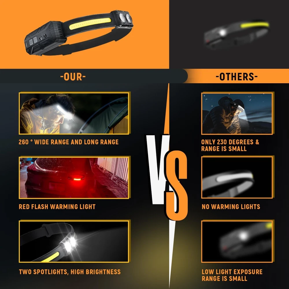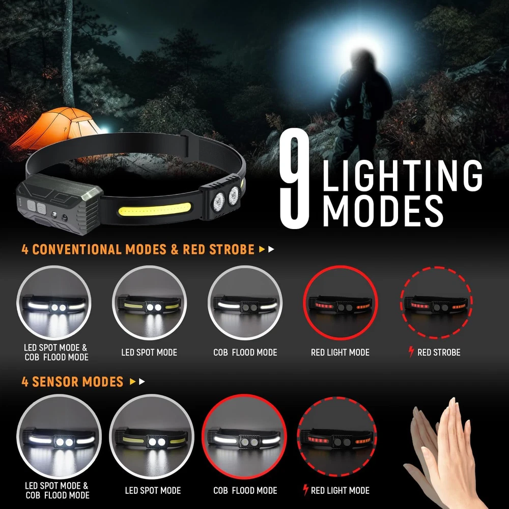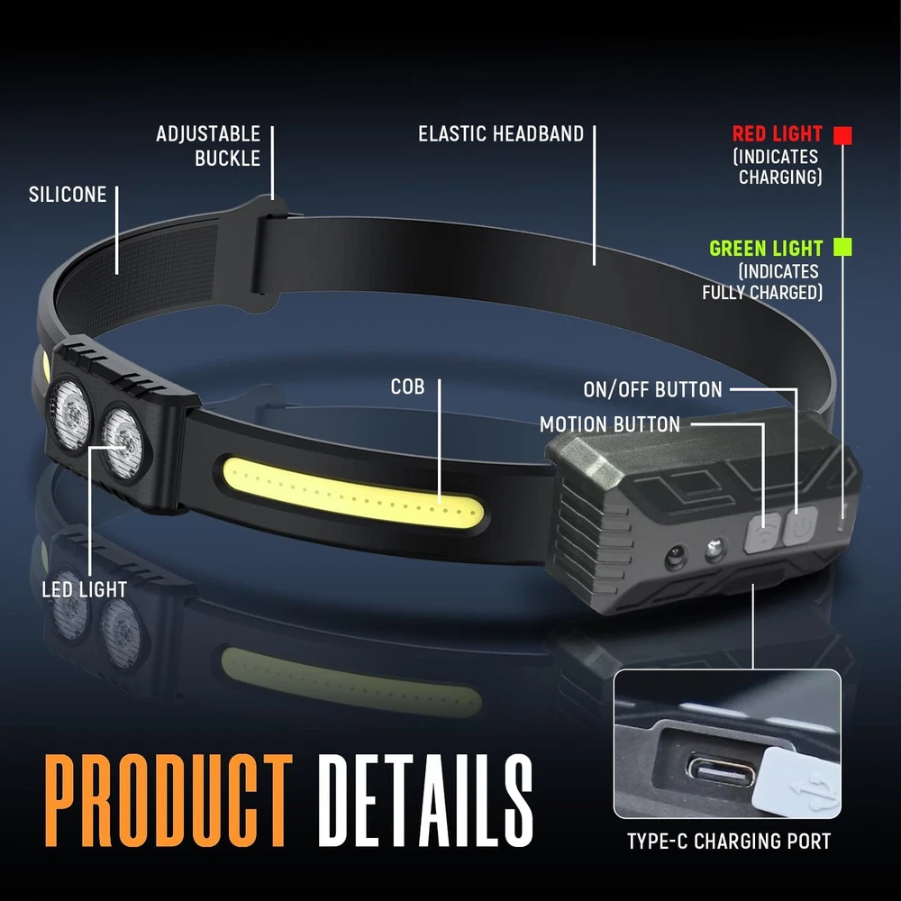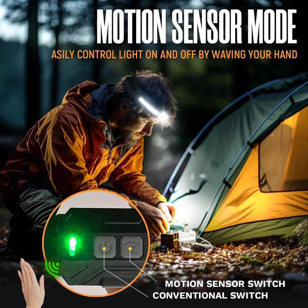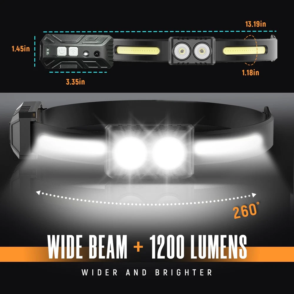 Headlamp Rechargeable, 270°Wide-Beam Head Lamp LED with Motion Sensor for Adults