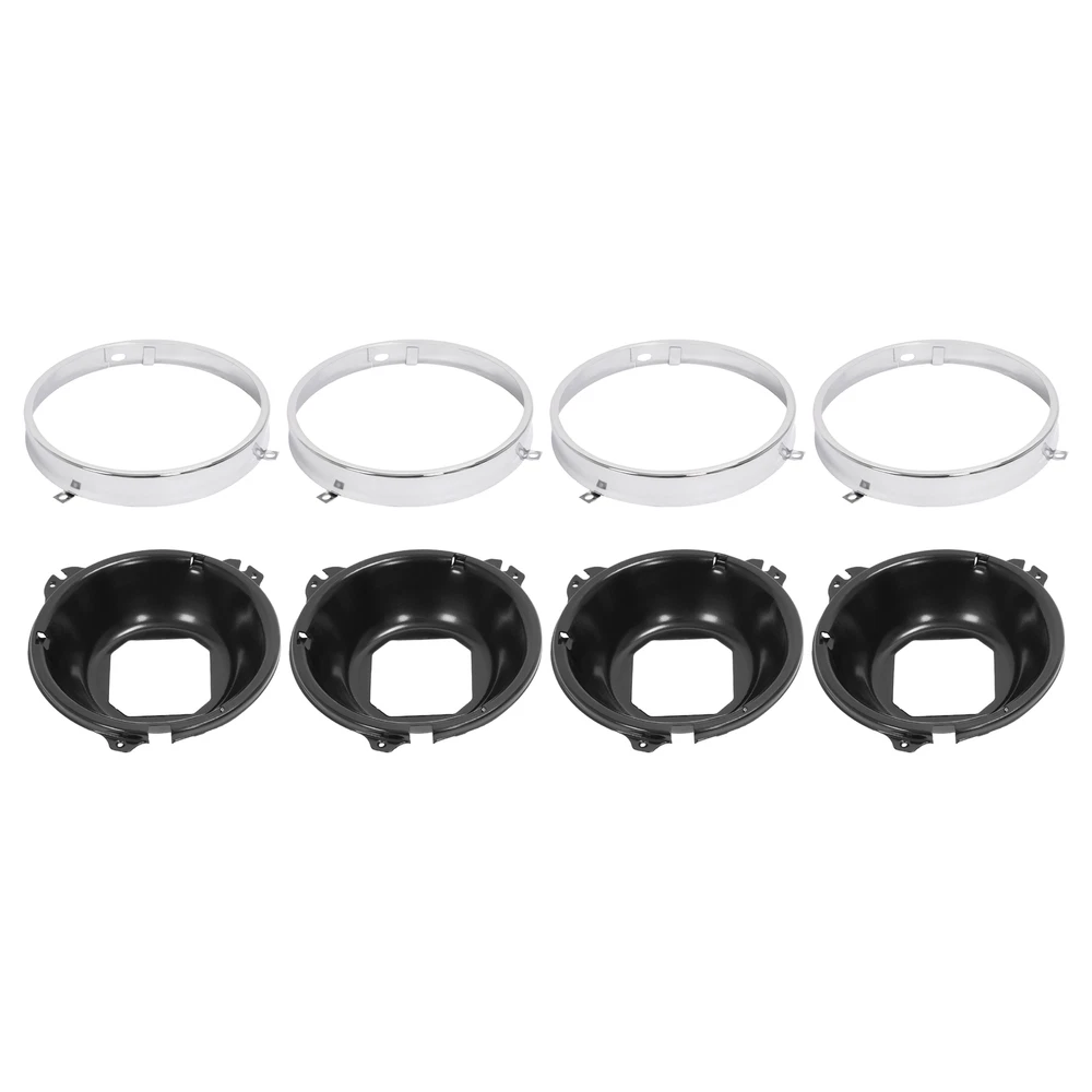 Headlight Molding Ring and Bucket For Chevrolet Chevelle 64-70 & Impala 58-72 FIT FOR: For Chevrolet Chevelle 1964-1970 For Chevrolet El Camino 1964-1970 For Pontiac GTO 1966-1970 For Pontiac LeMans 1966-1969 For Pontiac Tempest 1966-1969 For Chevrolet Impala 1958-1972 Specification: Condition: 100% Brand New Type: Headlight Molding+Headlight Bucket Material: Steel Color: Black+Silvery Surface Finish: Electrophoresis+Chrome Installation method: Replacement Placement on Vehicle:Front, Left, Right Manufacturer Warranty: 3 Years Mounting Hardware Included: Yes Feature: Protects headlamp assemblies from dust, debris and moisture, extending the life of your headlamp. Made from durable and weather-resistant materials to ensure long-lasting performance even in extreme conditions. Built to last, it maintains structural integrity through daily use and harsh driving conditions. Adds a clean, polished look to the front end of your vehicle, enhancing its overall beauty. Designed for direct installation with pre-drilled holes and compatible mounting points, saving time and effort. Package Includes: 4PCS Headlight Molding 4PCS Headlight Bucket Shipping: All items will be shipped out in 1 business day, no expedited service available. We ship our items to USA only(Does NOT include Hawaii, Alaska or Puerto Rico, PO Boxes/APO's). Shipping Notes: We use multiple warehouses and will select the nearest warehouse for delivery according to your order address and our inventory, Thank you for your cooperation. Contact us: Any Questions, Just feel free to contact us on eBay. We will reply you in 24 hours. On Dec 10, 2024 at 19:45:56 PST, seller added the following information: