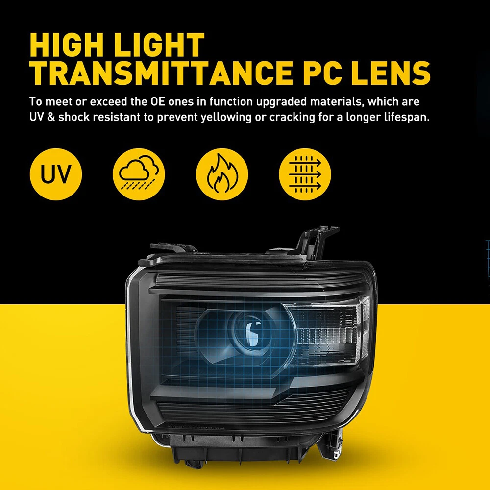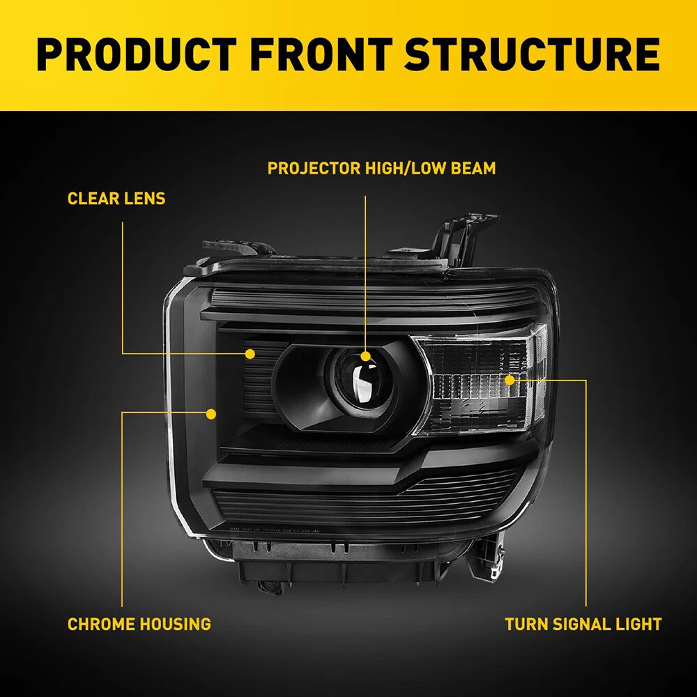 Fit for: 2014-2018 GMC Sierra 1500 Base / Denali / SLE / SLT models only 2015-2019 GMC Sierra 2500HD Base / Denali / SLE / SLT models only 2015-2019 GMC Sierra 3500HD Base / Denali / SLE / SLT models only (Compatible models with factory LED daytime running lights) (Does not compatible models with 2014 classic body style) (For models with factory non-LEDs lights headlights: This headlights will light up the bottom LEDs only by manually turn on the parkinglights; the top LEDs will not turn on) (Fits models with factory halogen headlights only; Does Not fit models with factory Xenon HID headlights) Specifications: OE number: GM2502390, GM2503390, GM2502394, GM2503394 Headlight Set FOR 2014-2018 GMC Sierra 1500 2015-2019 Sierra 2500 HD 3500 HD L+R Fit for: 2014-2018 GMC Sierra 1500 Base / Denali / SLE / SLT models only 2015-2019 GMC Sierra 2500HD Base / Denali / SLE / SLT models only 2015-2019 GMC Sierra 3500HD Base / Denali / SLE / SLT models only (Compatible models with factory LED daytime running lights) (Does not compatible models with 2014 classic body style) (For models with factory non-LEDs lights headlights: This headlights will light up the bottom LEDs only by manually turn on the parkinglights; the top LEDs will not turn on) (Fits models with factory halogen headlights only; Does Not fit models with factory Xenon HID headlights) Specifications: OE number: GM2502390, GM2503390, GM2502394, GM2503394 23130715, 23130716, 23130717, 23130718 Material: ABS+PC (ABS Plastic Housing/Polycarbonate lens) Appearance color: 1.Housing Color:Black 2.Lens Color:Clear 3.Reflector Color:Amber Note: Projector √ ( Include) DRL × (Not Include) Bulb × ( Not include) Features: *Easy to install: Direct replacement, drilling and cutting are not required. *Superior quality: Made of ABS and PC materials with toughness and heat resistance functions to ensure its long service life and durability. *Angle adjustment: Equipped with a headlamp Angle adjustment knob, you can adjust the best Angle of view through the knob. *Suggestion: 1.Please confirm the OE number before purchasing!!! 2.Professional installation is required!!! Packaging include: Headlights*2(Left+Right) Item Specifics Mounting Style Screws Bulbs Included No. Reuse Existing Bulbs Fitment Type Direct Replacement Items Included Driver & Passenger Side Headlgihts Manufacturer Part Number SDD-HLOHGMCS14BKCL1 Material ABS Plastic / Polycarbonate Lens Superseded Part Number SDD-HLOHGMCS14BKCL1 Placement on Vehicle Front, Left, Right California Prop 65 Warning This product contains chemicals known to the State. Brand AUXITO Bulb Shape Code H7 High / Low Beam Type Headlight Assembly Interchange Part Number 23130718 23130717 84144049 84144050 2014 2015 2016 2017 2018 Parking Light 7443 OE/OEM Part Number GM2503394 GM2502394 15 16 17 Housing Color Black Style OE Features Projector Housing Lens Color Clear Lens / Clear Reflector Please Note Fit Models with Halogen Headlights Only Turn Signal 7443A Lighting Technology Halogen Number of Bulbs 0 Light Color Cold White Manufacturer Warranty 1 Year Payment Returns DESCRIPTION PAYMENT SHIPPING RETURN POLICY CONTACT US Shop Category Store Home LED Headlight ◈ H4 ◈ H13 LED Reverse Light ◈ T15/921/W16W LED License Plate Light LED Side Marker Light Car Parts & Accessories Tail Light assemblies Other Hot Item Picture New List Item For Ford F250 F350 Camshaft E350 Position Sensor 7.3L 1999-2003 PC603 USD 16.99 2Pair 9005 HB3 LED Headlight Super Bright Bulbs Kit HIGH/LOW Beam 6500K White USD 53.99 50 Pcs Fender Liner Bumper Body Cover Splash Shield Bolt Hood Retainer Car Screw USD 14.99 Exterior Door Handle For Scion 2004-06 xB Black Front Driver Side 6922052050C0 USD 20.99 22060AA070 Knock Sensor Plastic 1999-2002 For Subaru Baja Legacy Outback Impreza USD 13.99 Help & Info Payment Policy Shipping Policy Return Policy FAQ About Us Headlight Set FOR 2014-2018 GMC Sierra 1500 2015-2019 Sierra 2500 HD 3500 HD L+R Fit for: 2014-2018 GMC Sierra 1500 Base / Denali / SLE / SLT models only 2015-2019 GMC Sierra 2500HD Base / Denali / SLE / SLT models only 2015-2019 GMC Sierra 3500HD Base / Denali / SLE / SLT models only (Compatible models with factory LED daytime running lights) (Does not compatible models with 2014 classic body style) (For models with factory non-LEDs lights headlights: This headlights will light up the bottom LEDs only by manually turn on the parkinglights; the top LEDs will not turn on) (Fits models with factory halogen headlights only; Does Not fit models with factory Xenon HID headlights) Specifications: OE number: GM2502390, GM2503390, GM2502394, GM2503394 23130715, 23130716, 23130717, 23130718 Material: ABS+PC (ABS Plastic Housing/Polycarbonate lens) Appearance color: 1.Housing Color:Black 2.Lens Color:Clear 3.Reflector Color:Amber Note: Projector √ ( Include) DRL × (Not Include) Bulb × ( Not include) Features: *Easy to install: Direct replacement, drilling and cutting are not required. *Superior quality: Made of ABS and PC materials with toughness and heat resistance functions to ensure its long service life and durability. *Angle adjustment: Equipped with a headlamp Angle adjustment knob, you can adjust the best Angle of view through the knob. *Suggestion: 1.Please confirm the OE number before purchasing!!! 2.Professional installation is required!!! Packaging include: Headlights*2(Left+Right) Payment Returns All rights reserved. On Dec 28, 2024 at 18:33:39 PST, seller added the following information: