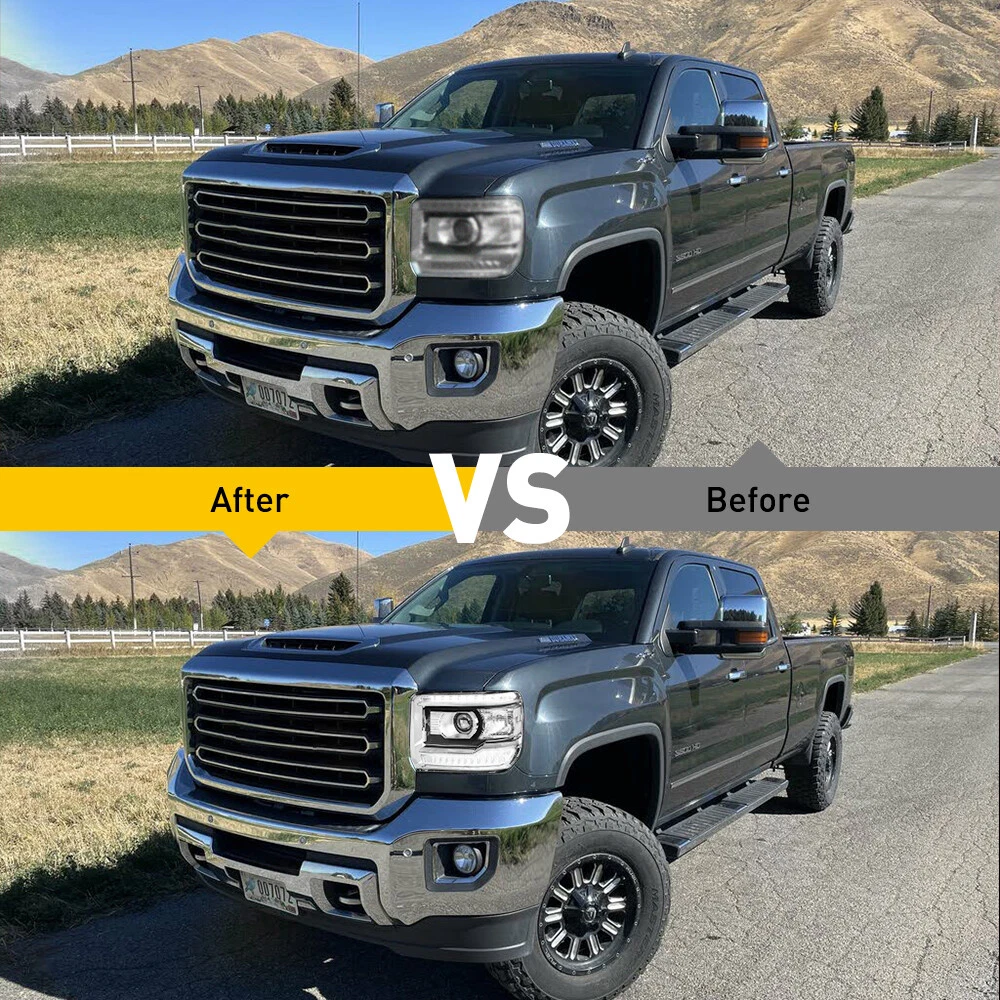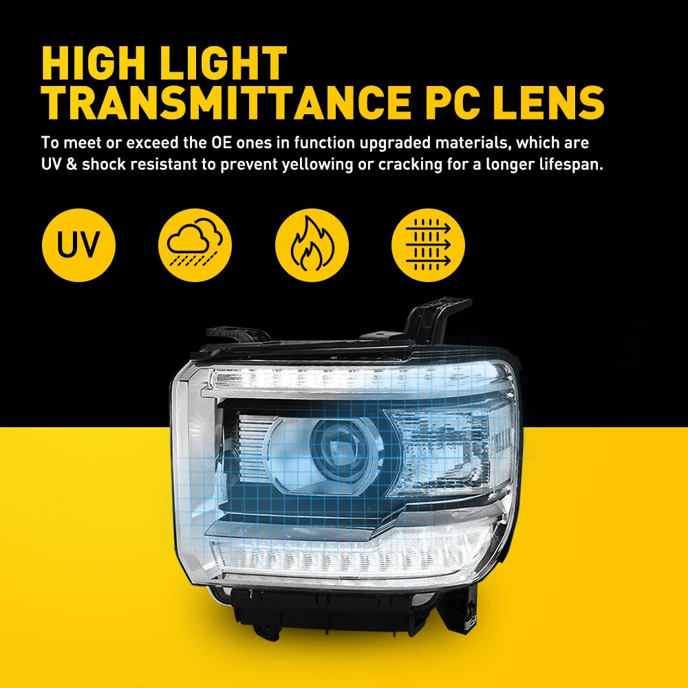 Projector Headlights Headlamps Fit For 2014-2019 GMC Sierra 1500 2500HD 3500HD Base Fit for: 2014-2018 GMC Sierra 1500 Base / Denali / SLE / SLT models only 2015-2019 GMC Sierra 2500HD Base / Denali / SLE / SLT models only 2015-2019 GMC Sierra 3500HD Base / Denali / SLE / SLT models only (compatible models with factory LED daytime running lights) (Does not compatible models with 2014 classic body style) (For models with factory non-LEDs lights headlights: This headlights will light up the bottom LEDs only by manually turn on the parking lights; the top LEDs will not turn on) Headlight Set FOR 2014-2018 Sierra GMC 1500 2015-2019 Sierra 2500 HD 3500 HD Projector Headlights Headlamps Fit For 2014-2019 GMC Sierra 1500 2500HD 3500HD Base Fit for: 2014-2018 GMC Sierra 1500 Base / Denali / SLE / SLT models only 2015-2019 GMC Sierra 2500HD Base / Denali / SLE / SLT models only 2015-2019 GMC Sierra 3500HD Base / Denali / SLE / SLT models only (compatible models with factory LED daytime running lights) (Does not compatible models with 2014 classic body style) (For models with factory non-LEDs lights headlights: This headlights will light up the bottom LEDs only by manually turn on the parking lights; the top LEDs will not turn on) (Fits models with factory halogen headlights only; Does Not fit models with factory Xenon HID headlights) Specifications: OE number: GM2502390, GM2503390, GM2502394, GM2503394 23130715, 23130716, 23130717, 23130718 Material: ABS+PC (ABS Plastic Housing/Polycarbonate lens) Appearance color: 1.Housing Color: Black 2.Lens Color:Clear 3.Reflector Color:White Note: Projector √(Include) DRL √ (Include) Bulbs × (Not include) Features: *Easy to install: Direct replacement, drilling and cutting are not required. *Superior quality: Made of ABS and PC materials with toughness and heat resistance functions to ensure its long service life and durability. *Angle adjustment: Equipped with a headlamp Angle adjustment knob, you can adjust the best Angle of view through the knob. *Suggestion: 1.Please confirm the OE number before purchasing!!! 2.Professional installation is required!!! Packaging include: Headlights*2(Left+Right) Item Specifics Brand AUXITO Manufacturer Warranty 5 Year Housing Color Chrome Placement on Vehicle Housing ColorLeft, Right, Front Lens Color Clear Bulb Shape Code Use Stock Bulbs Interchange Part Number GM2502390, GM2503390, GM2502394, GM2503394 Package Includes Driver & Passenger Side Headlights Bulbs Included No Material ABS Plastic, Polycarbonate Lens Certifications DOT, SAE Fitment1 2014-2018 GMC Sierra 1500 Base / Denali / SLE / SLT models only Fitment2 2015-2019 GMC Sierra 2500HD Base / Denali / SLE / SLT models only Fitment3 2015-2019 GMC Sierra 3500HD Base / Denali / SLE / SLT models only Number of Bulbs 0 Fitment Type Performance/Custom Type Headlight Assembly Features Reflector Housing, Projector Housing, Facelift Headlight OE/OEM Part Number GM2502390, GM2503390, GM2502394, GM2503394 OE/OEM Part Number GM2502390, GM2503390, GM2502394, GM2503394 Payment 1. We can only accept payment from PayPal. 2. Please keep the consistency of Paypal address and ebay address. Shipping 1. All items will be shipped in 12 hours after receiving your payment . 2. We ship this item to US only via USPS first class mail. It usually takes 3-5 working days to deliver. Returns 1. We offer 30 days return policy. 2. Please contact us within 30 days from the date you receive your package if you have any questions with the products . 3. Refund will be sent after we got your returned package. 4. All returned items should be in the original packaging with tracking number. Contact Us We work from Monday - Saturday 9:00AM - 6:00PM, but we will reply once we get your message. There will be delay on response if you send message or E-Mail on Sunday. DESCRIPTION PAYMENT SHIPPING RETURN POLICY CONTACT US Shop Category Store Home Other Hot Item Set of Delco 4 AC Oxygen O2 for Sensor 2003-2005 Cadillac Chevrolet GMC V8 5.3L USD 50.99 For 2002-2008 Dodge Chrysler Stereo Car Radio Wiring Harness Adapter USD 11.59 Door Latch Cables LH+RH Front For 2007-2013 Chevy Silverado 1500 2500 HD 3500 HD USD 17.99 Rear Left or Right Outside Door Handle for 2010-2016 Toyota 4Runner Lexus GX460 USD 14.99 Universal Car Windshield Wiper Squirter Washer Nozzle Spray Jet Kit Fluid Hose T USD 9.99 New List Item 12597567 EVAP Emisson Canister Vapor Purge Solenoid Valve fits Chevy Buick GMC USD 14.99 New Seat Recliner Adjustment Lever Handle Driver Side LH For 07-14 Chevy GMC USA USD 10.99 1 REPLACEMENT FOR FORD 2014-2019 FIESTA CAR FOG LAMP COVER BLACK LEFT WATERPROOF USD 14.99 AUXITO H4 9003 Super White 24000LM Kit LED Headlight Bulb High Low Beam Fog Lamp USD 52.99 8 Carbon Fiber Car Door Handle Door Bowl Cup Protector Film Anti-Scratch Sticker USD 11.99 Excellent Delivery Headlight Set FOR 2014-2018 Sierra GMC 1500 2015-2019 Sierra 2500 HD 3500 HD Projector Headlights Headlamps Fit For 2014-2019 GMC Sierra 1500 2500HD 3500HD Base Fit for: 2014-2018 GMC Sierra 1500 Base / Denali / SLE / SLT models only 2015-2019 GMC Sierra 2500HD Base / Denali / SLE / SLT models only 2015-2019 GMC Sierra 3500HD Base / Denali / SLE / SLT models only (compatible models with factory LED daytime running lights) (Does not compatible models with 2014 classic body style) (For models with factory non-LEDs lights headlights: This headlights will light up the bottom LEDs only by manually turn on the parking lights; the top LEDs will not turn on) (Fits models with factory halogen headlights only; Does Not fit models with factory Xenon HID headlights) Specifications: OE number: GM2502390, GM2503390, GM2502394, GM2503394 23130715, 23130716, 23130717, 23130718 Material: ABS+PC (ABS Plastic Housing/Polycarbonate lens) Appearance color: 1.Housing Color: Black 2.Lens Color:Clear 3.Reflector Color:White Note: Projector √(Include) DRL √ (Include) Bulbs × (Not include) Features: *Easy to install: Direct replacement, drilling and cutting ar