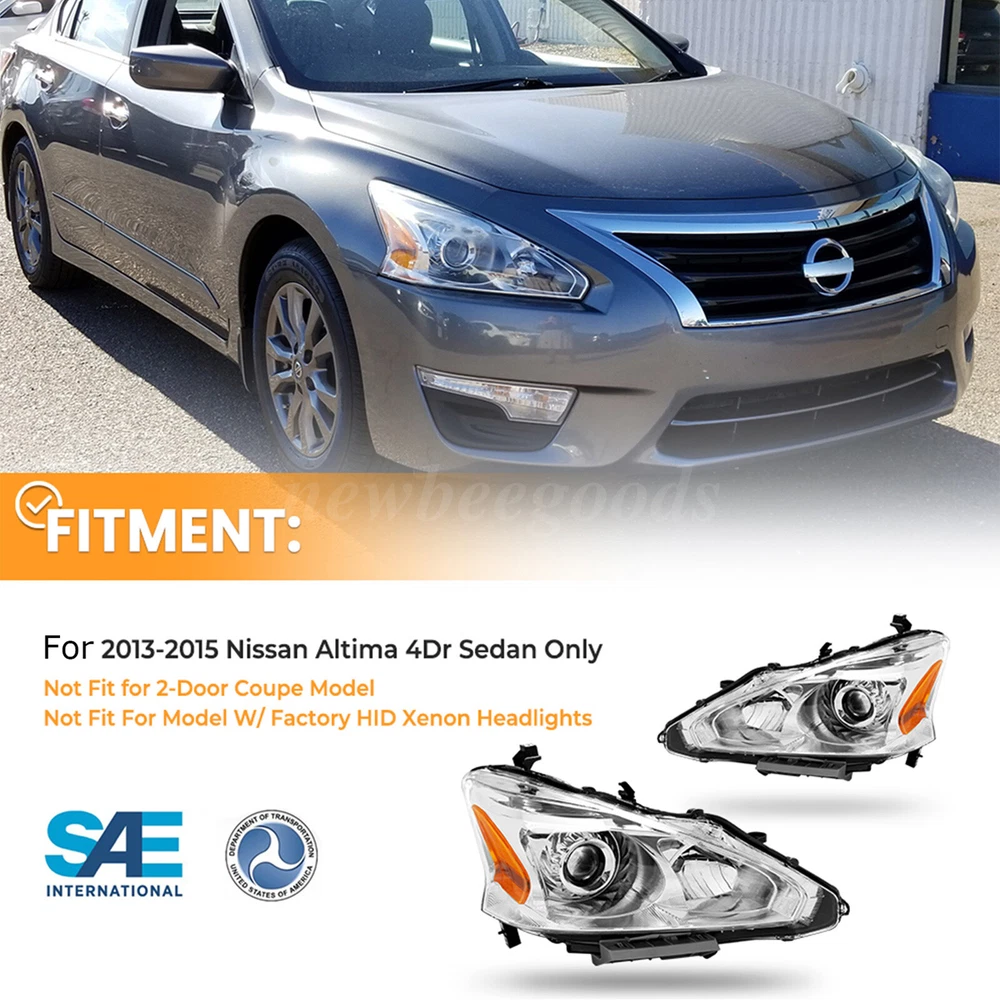 Welcome to NewBeeGoods feedback | contact us Location United States Hours Open 24/7 Support Feel free to Contact us Electronics Motors Supplies Home & Garden Pet Supplies Business & Industrial Newbeegoods USD 105.99 Headlights Assembly For 2013-2015 Nissan Altima Sedan Chrome Left+ Right Side Specification: Type: Headlamp assembly (without bulb) No light bulb harness OE number: 260103TA0A, 260603TA0A Lighting type: Halogen Case color: chrome Lens color: transparent Lamp type: High Beam: H9 (Bulbs Not Included) Low Beam: H11(Bulbs Not Included) Material: ABS plastic + polycarbonate lens Installation position: front right, front left Usage: Direct replacement Includes: driver side and passenger side Features: Waterproof Dust and moisture: Yes Condition: 100% new quality Anticipated Ship Out Time:Same day - 1 business day Color/Finish:OE comparable Recommended Use:OE Replacement Replaces Partslink Number:NI2503208, NI2502208 Interchange Part Number:260103TA9A, NI2503208, 260603TA9A, NI2502208 Components:(2) Headlight Attention Needed:For Halogen Headlights ONLY. Location: Left and Right Fitment: 2013-2015 Nissan Altima 4Dr Sedan Only Not Fit for 2-Door Coupe Model Not Fit For Model W/ Factory HID Xenon Headlights Package Contents: 1 pair of headlights, excluding bulb harness and bulb (driver and passenger side) Installation instructions are not included. Features: -💡【 Advanced Beam Mode 】The headlights use a ground-breaking horizontal beam adjuster to help you get the correct beam pattern. -💡 【 Easy to install 】Plug and play operation. Bolt directly to the OE to install or replace the stock unit, no drilling, no vehicle modification to quickly replace the damaged headlight assembly, brighter than before in bad weather conditions such as fog, rain, snow, night, etc., to keep you safe. -💡 【 Waterproof and dustproof design 】The well-designed waterproof and dustproof structure makes this headlamp resistant to bad weather, keeps the internal components dry, and prolongs the service life, so that you don't need to worry about the lighting effect in bad weather. -💡 【 UV Resistance 】Specially add anti-UV coating to enhance the lens so that the lamp has excellent UV resistance, is not susceptible to UV corrosion, maintains the clarity of the surface of the lamp and light transparency, prolongs the service life, and maintains the lighting effect. -💡 【 High-quality silicone seal 】It is sealed with high-quality silicone and has passed strict air tightness tests to ensure waterproof and dustproof and protect the inside of the lamp from external influences. -💡 【 Efficient heat dissipation 】The unique heat dissipation design can effectively reduce the temperature of the lamp, which can protect the structure of the headlight, prolong the service life, and ensure long-term high-brightness lighting. Note: 1. Please confirm if it is suitable for your vehicle before purchasing. 2. Please check whether the installation is firm before driving to ensure driving safety. 3. Due to the difference in display and lighting, the picture may be slightly different from the actual product. 4. Search for our shop vehicles by year, make, model, and installation location. If you are unsure about this, please contact us via eBay message with the year, make, and model of your vehicle. Please let us know which product you are interested in so that we can check the parts and get back to you as soon as possible. 5. Installation guide or instructions are not included, professional installation is highly recommended. 6. Before you start adjusting the lights, make sure to check that the lights are aligned. Park your car about 10 to 25 feet away from the wall and aim your headlights at the wall. Shipping Returns Payment We only support transactions through the eBay, not other channels. We support all payment methods recommended by ebay. We promise to protect all the private information of our customers. It will take about 1-5 working days to reach you within USA. If your item develops a fault due to a manufacturing defect please contact us and we guarantee a satisfactory solution. If you return your item for any other reason within 30 days from receipt we will refund you. 100% Feedback - we're proud of our 100% record and aim to keep it that way! Please contact us if you're not entirely happy with your order and we'll try to rectify it ASAP! Our aim is to ship within 24 hours. All of our products are shipped locally from USA, with warehouses in PA and CA. But most of our inventory is in CA, so 90% of our products are packaged and delivered to you at our CA warehouse. We recommend using economy and standard shipping for shipping, such as FedEx and USPS. Due to various traffic and policy limited, express shipping sometimes does not deliver in time. Normaly, you will take the item within 1-5 days after you place it. other products Consumer Electronics BGPS, Video, Camera, Radio, and other Smart Electronics Motors Supplies LED Headlighs, Fog Lights, Seat Belt, Jump Starter Home & Garden Home Storage, Cleaning, Lighting, and Other Tools Pet Supplies Training, Grooming, Living, Eating for Pet About Newbeegoods Newbeegoods was born in Nov 11, 2022. We have been deeply involved in the auto and motorcycle parts industry for decades, and since 2020 we have been creating our e-commerce company, as well as expanding our business into other industries. Newbeegoods is already one of our 24 e-commerce subsidiaries and we trade in European countries including the USA, UK and Germany, and have established our independent warehouses in each country of sale. We have the confidence and ability to provide consumers with 100% product quality assurance and after-sales service. quick links Listings About Us Feedback Contact Us
