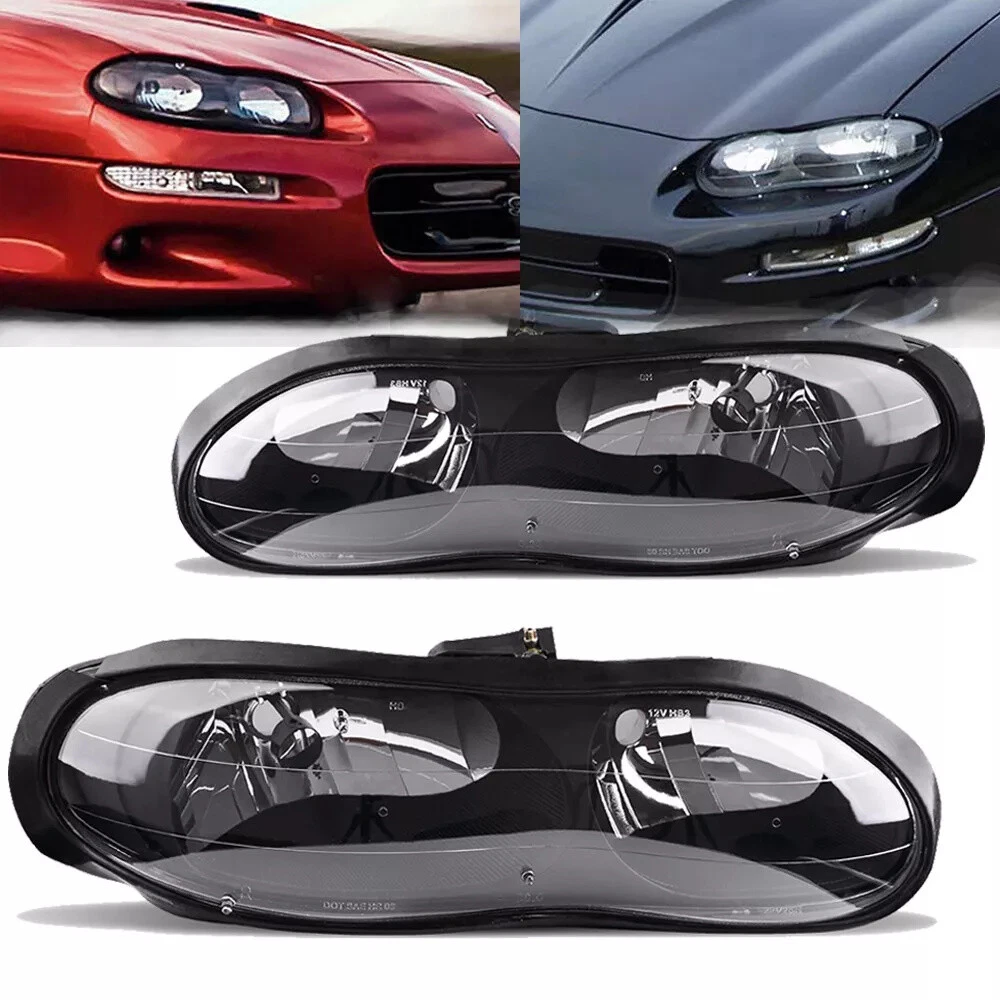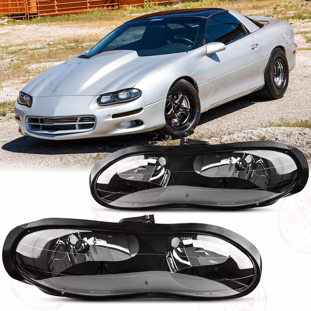 Feature High quality generic branded lights that are identical to OEM lights. Safety and Durable. DOT/SAT approved for street legal. Safety & Fashion. High grade ABS plastic. For toughness, impact resistance, and heat resistance. Condition: 100% Brand New and High Quality Material: ABS Plastic Housing / Polycarbonate Lens Color: Black Housing + Clear Lens High Beam Bulb Type: HB3 9005 (bulb NOT included) Low Beam Bulb Type: HB4 9006 (bulb NOT included) Fit for: for 1998-2002 Chevy Camaro Packing list: 1 Pair of Headlights (Driver & Passenger Side)