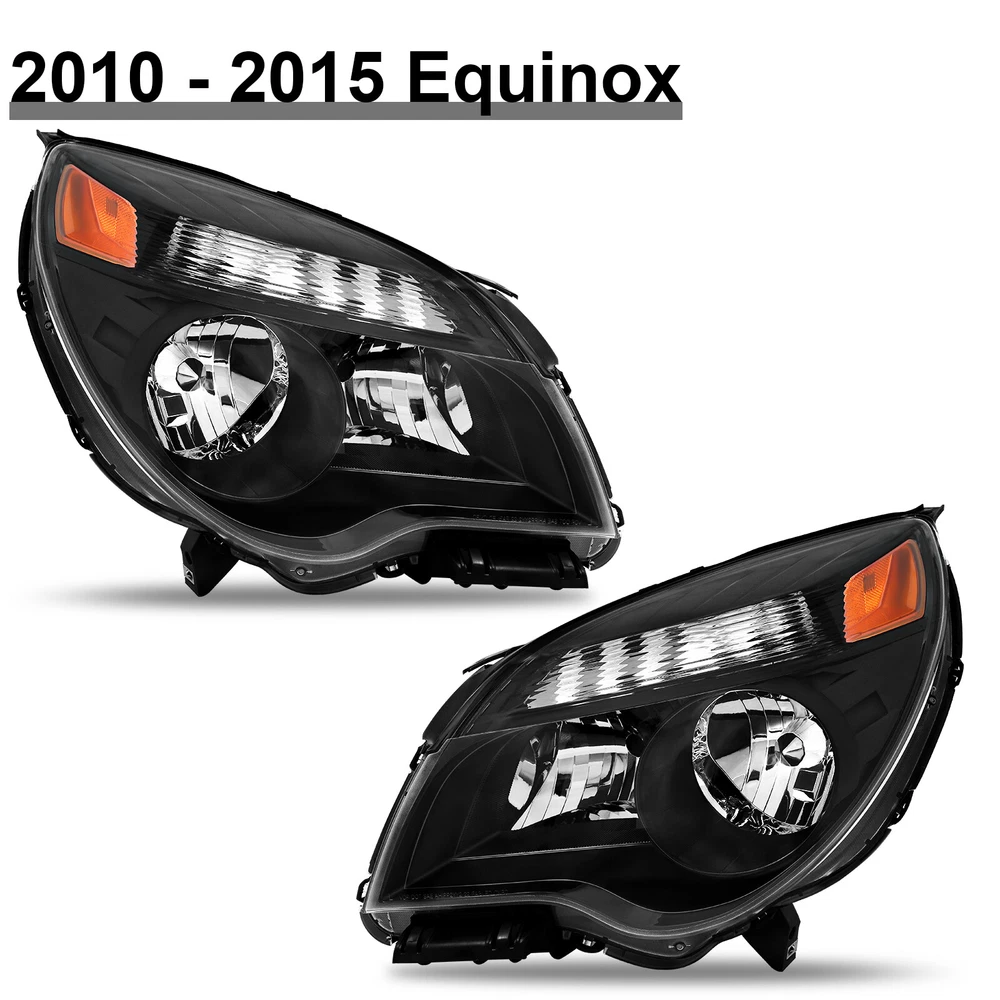 Headlights For 2010-2015 Chevy Equinox LT/LS Black Halogen Type Left+Right Pair Features: 1.Direct replacement for stock assemblies 2.Comes in pairs with driver & passenger sides (left and right) 3.DOT and SAE compliant with quality meeting or exceeding OEM units 4.All Headlight Lenses come with anti-yellowing/ageing coating 5.3-Months limited warranty 6.Increase your visibility during heavy rain, snow, dense fog and night time driving. Product Description: High Beam Bulb: 9005 Bulb (Bulbs are NOT included) Low Beam Bulb: H11 Bulb (Bulbs are NOT included) Turn Signal Light: 7444NA (Bulbs are NOT included) Housing Material: Plastic Lens Material: Plastic Black Housing Amber Reflector Compatible with: For 2010-2015 Chevy Equinox LT/LS Models Only ***Not Compatible with Factory HID Headlight Models*** Package includes: One Set Of headlights Driver and Passenger Side(Not include bulbs) Payment Shiping Policy Returns Policy Feedback Contact us Payment We accept PayPal, Google Pay, Credit Cards, and Debit Cards. Shiping Policy All Orders Will Ship Within Two Business Days.Except PR,HI,AK,GU and PO Box addresses. No local pick up All Packages Will Be Inspect Before Shipping, We Will Provide All Packing Material Needed For Your Package For Shipping Such As Boxes, Cushioning And Tape To Improve Shipping Quality. Very Important: Double check shipping address. We are not responsible for incorrect or undeliverable addresses. Returns Policy 60 Days returns satisfaction guarantee. All of Our Items Are 100% Brand New. If The Item Shows Up Defective or Broken, Please Contact Us Within 3 Business Days By Using "Ask A Question" Link Located At The Bottom of Our Listing. Your Questions/Concerns Will Be Responded Within 12 Hours Monday To Friday. Buyers May Contact us On The Weekends or Pubic Holidays And We Will Respond On The Next Working Day. We Will Offer Replacements, Exchange or Full Refund. 100% Satisfaction Guaranteed. We Will File Damage Or Lost Claim For Our Buyers Feedback We will leave a positive feeback immediately after payment is received. We appreciate a positive feedback as much as you do. If you have any issue with order,pls. contact us before leaving a feedback. We will glad to resolve your issue.Your satisfaction is our priority. Contact us If you have any concerns, Pls. feel free to contact us at any time.