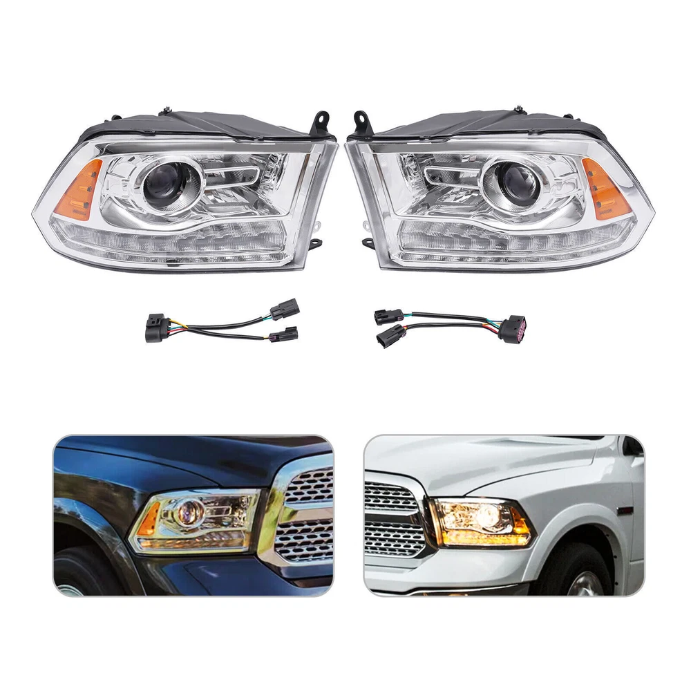 Specifications OEM: CH2502245, CH2503245, CH2502244, CH2503244 Manufacturer Part Number: CH2502245, CH2503245, CH2502244, CH2503244 Interchangeable Part Number: 68093220AD, 68276122AC, 68324932AD, 68093217AD, 68324941AD, 68093216AD, 68324940AD Applicable Models: 2013-2018 Ram 1500 2500 3500, 2019 Ram 1500 Classic Condition: New Material: PP-TD40 Lens Color: Clear Housing Color: Chrome Working Voltage: 12V Light Source Type: Halogen, LED High Beam Type: 9006 (Included) Low Beam Type: 9005 (Included) Turn Signal Type: LED (Included) Side Marker Lamp Type: LED (Included) LED Daytime Running Light: Yes Installation Position: Front, Left, Right Way of Use: Direct Replacement Gross Weight: 7kg/ 15.43 lbs Net Weight: 6.5kg/ 14.33 lbs Package Size: 65*50*26cm/ 25.59*19.69*10.24in Headlights Headlamp For 2013-2018 Dodge Ram1500/2500/3500 Clear Chrome Projector Specifications OEM: CH2502245, CH2503245, CH2502244, CH2503244 Manufacturer Part Number: CH2502245, CH2503245, CH2502244, CH2503244 Interchangeable Part Number: 68093220AD, 68276122AC, 68324932AD, 68093217AD, 68324941AD, 68093216AD, 68324940AD Applicable Models: 2013-2018 Ram 1500 2500 3500, 2019 Ram 1500 Classic Condition: New Material: PP-TD40 Lens Color: Clear Housing Color: Chrome Working Voltage: 12V Light Source Type: Halogen, LED High Beam Type: 9006 (Included) Low Beam Type: 9005 (Included) Turn Signal Type: LED (Included) Side Marker Lamp Type: LED (Included) LED Daytime Running Light: Yes Installation Position: Front, Left, Right Way of Use: Direct Replacement Assembly Method: Closed Gross Weight: 7kg/ 15.43 lbs Net Weight: 6.5kg/ 14.33 lbs Package Size: 65*50*26cm/ 25.59*19.69*10.24in Key Features Good Compatibility: This product is a customized product, specially customized for the 2013-2018 Ram 1500 2500 3500 and 2019 Ram 1500 Classic. So it can be compatible with the adapted models. Good Customer Service: Communication is the best way to solve problems. If you encounter any problem after purchase, please contact us in time before opening or unpacking the box. We will do our best to solve the problem for you. High-quality Material: This product is made of high-quality PP-TD40, with high hardness, strong compression resistance , and long service life. Highlights Brand New, With High Quality Direct Replacement Trouble-free Installation Stylish Appearance Strong and Durable Exquisite Workmanship Easy to Clean Stable Performance Long Service Life Fits (As a Reference) For 2013-2018 Ram 1500 2500 3500, 2019 Ram 1500 Classic OEM Part Number: CH2502245, CH2503245, CH2502244, CH2503244 Package Included 1 Pair x Left & Right Headlamps Notes The product is compatible with factory projector headlight models only, and not w/ dual & quad beam headlight models. We strongly recommend professional installation. Please contact us if you have any questions. Please allow the slight color difference caused by the shooting light and 1-3cm error due to manual measurement, and make sure you do not mind before you place the order. Payment Delivery details Terms of sales About us Contact us Payment We accept ebay payment 。 Fees such as import duties, taxes are not included in the item price or shipping costs. These charges are the buyer's responsibility. Delivery details Shipping: 2-9 working days to: USA Terms of sales We maintain high standards of excellence and strive for hundred percent customer satisfaction. Feedback is very important to us. We hope that you contact us immediately before you give neutral or negative feedback, so that we can address your concerns. It is impossible to address issues if we do not know about them! About us Your satis faction is our ultimate goal. We work hard to earn your trust and future business. Our certified technicians have tested each item before shipping. The unit comes with 1 year limited warranty on all manufacturing defects. a) If you receive a defective item, you may return it or ask for a discount. Please contact us within 14 days after you receive the package. b) What you returned must be intact and in its original packaging as re? u. Customer is responsible for shipping costs of the returned item. c) We will cover the cost of shipping back t with the shipping rate indicated in the registration page. We will send you a new unit or refund the full payment you paid. Thank you. Contact us Business Hour Business Hour: Monday To Friday: 8:30 AM to 5:00 PM (Beijing China time) Due to time zones, our reply to your questions may not be immediately. But within above working time, we will reply your email within 24 hours. If it's non-workdays, please kindly be patient and wait till Monday. Please contact us with ebay message. Please feel free to contact us if you have any questions. Monday To Friday: 8:30 AM to 5:00 PM (Beijing China time) Due to time zones, our reply to your questions may not be immediately. But within above working time, we will reply your email within 24 hours. If it's non-workdays, please kindly be patient and wait till Monday. Please contact us with ebay message. Please feel free to contact us if you have any questions.