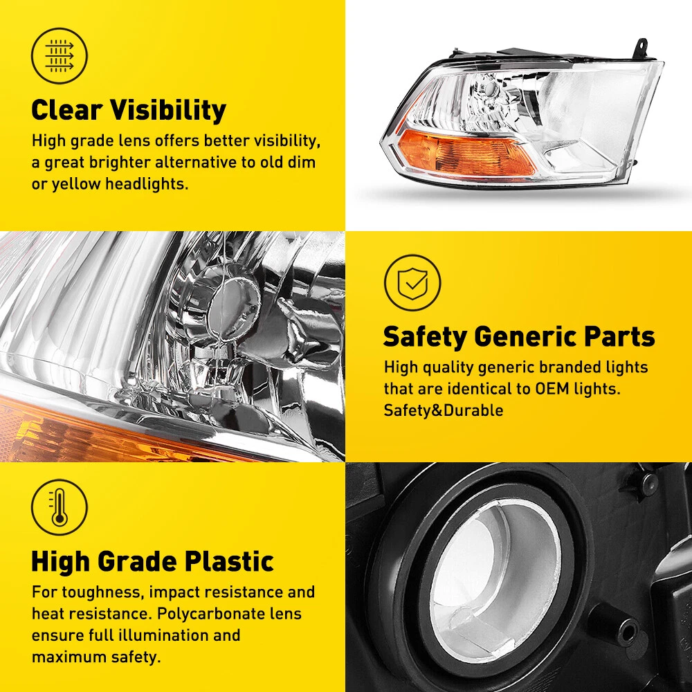 Fit for: 2009-2012 Dodge Ram 1500 2010-2012 Dodge Ram 2500 3500 Compatible with Dual Beam Models Not Compatible with Factory Projector Headlight Models or Quad Beam Headlight Models Specifications: OE number: 55277409AD,55277409AF,55277409AG,5277409AD CH2502217,CH2503217 2221-0090L,2221-0090R Material: ABS+PC (ABS Plastic Housing/Polycarbonate lens) Appearance color: 1.Housing Color: Chrome 2.Lens Color??Clear 3.Reflector Color??Amber The bulb type of original car: 1.Low beam: H13 2.High beam: H13 3.Turn signal light: 3157A Note: Headlights Headlamps Chrome Dodge Housing Pair for Ram 2009-2018 1500 2500 EXA Fit for: 2009-2012 Dodge Ram 1500 2010-2012 Dodge Ram 2500 3500 Compatible with Dual Beam Models Not Compatible with Factory Projector Headlight Models or Quad Beam Headlight Models Specifications: OE number: 55277409AD,55277409AF,55277409AG,5277409AD CH2502217,CH2503217 2221-0090L,2221-0090R Material: ABS+PC (ABS Plastic Housing/Polycarbonate lens) Appearance color: 1.Housing Color: Chrome 2.Lens Color??Clear 3.Reflector Color??Amber The bulb type of original car: 1.Low beam: H13 2.High beam: H13 3.Turn signal light: 3157A Note: Projector ×??Not include?? DRL × (Not include) Bulb × (Not include) Features: *Easy to install: Direct replacement, drilling and cutting are not required. *Superior quality: Made of ABS and PC materials with toughness and heat resistance functions to ensure its long service life and durability. *Angle adjustment: Equipped with a headlamp Angle adjustment knob, you can adjust the best Angle of view through the knob. *Suggestion: 1.Please confirm the OE number before purchasing!!! 2.Professional installation is required!!! Packaging include: Headlights*2(Left+Right) Item Specifics Brand AUXITO Lighting Technology Halogen Type Headlight Assembly Features Custom Headlights Factory Headlights Halo Headlights Housing Color Chrome (Crystal) Placement on Vehicle Front Left Right Lens Color Clear Bulb Shape Code H13 (9008) Manufacturer Part Number Does Not Apply OE/OEM Part Number 55277409AD,55277409AF,55277409AG,5277409AD,5527740 Interchange Part Number 2221-0090L,2221-0090R Manufacturer Warranty 5 Year California Prop 65 Warning This product can expose you tochemicals including dehp, which are known to the State of California to cause cancer and birth defects or other reproductive harm. Headlight Style Factory Fitment Type Direct Replacement Other Part Number CH2502217,CH2503217 High&Low Beam Bulb Type H13(Bulbs are not included) Fitment ① For 2009-2012 Dodge Ram 1500 Fitment ② For 2010-2012 Dodge Ram 2500 3500 Note 1 Compatible w/ Dual Beam Models Note 2 Not Compatible w/ Factory Projector Headlight Models Note 3 Not Compatible w/ Quad Beam Headlight Models Universal Fitment No Payment We only accept PayPal payment, should be received within 3 days from the date of purchase. Please keep the consistency of Paypal address and ebay address. Payment should be made within 4 days once you won a item ,or ebay will launch Unpaid Reminder agaist you and there will be bad record on your ebay account . Buyers are responsible for import duties, custom fees and taxes.Please check with your country's custom office to determine the additional costs before you finally make the purchase Shipping All items will be shipped in 48 hours after receiving your payment . We ship this item to US only via USPS first class mail. It usually takes 3-6 working days to deliver. Returns We offer 30 days return policy. Please contact us within 30 days t from the date you receive your order if you have any issues with the product or want return .Refund will be send after we got your resend package. All returned items should be in the original packaging , return tracking information should be provided .. Buyer is responsible for return shipping cost due to the problem not caused by item quality itself . Contact Us Our office hours are MONDAY - FRIDAY 9:00PM - 6:00PM PST, but we will response you once we get your message .There will be some delay on response if you send message or E-Mail on weekend. FAQ Q1: Will this bulb fit my vehicle? A: We can match almost any vehicle to one of our bulb sizes. eBay only lets us include partial vehicle fitments per listing, but if your vehicle does not show up on the compatibility table at the top of our listings, welcome you to contact us for free consulation before purchasing a product. Q2: My item has not arrived, what's taking so long? A: Sometimes items take longer than expected, especially if it’s going far or to rural area. Check with your post office to see if your item has been held up. Sometimes USPS will not update a tracking number until it has arrived at its destination. If your item still has not arrived after a few days, let us know so we can double check for you and help solve it asap. Q3: Do I need to mention the Year, Make and Model in the notes when place order? A: YES. Please include the Year, Make, and Model in the notes section during checkout to ensure you receive everything needed for your kit! Q4: My bulbs won't fit, help! A: Special bulb holder may be required. See if you can take the holder from the stock bulb. If not, let us know. The bulb size may be wrong, double check the item you received with the item you ordered. Do you have an aftermarket lighting housing? These may not be perfectly fitted for aftermarket bulbs and will require some manual modifications. Q5: Neither side lighting up? Both sides flicker, flash, or work inconsistantly. A:Check the headlight fuses, and then check the ballast plugs to insure correct installation. If this doesn't work, there may be a voltage problem with the vehicle. You probably just need a relay or capacitor. Q6: WARNING ABOUT POLARITY Unlike halogen bulbs, LED are polarity sensitive. BEFORE you start your LED kit installation, verify the polarity on your vehicle by simply plugging the LED bulb into your vehicle socket. - if your light turns on, please proceed to install both bulbs onto your