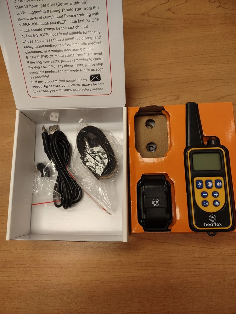 ebay template ITEM FEATURES Heaflex Dog Shock Collar, Waterproof Rechargeable, 1640ft Dog Training Electric Collar Remote with LED Light, Beep, Vibration, Shock for Medium/Large Breed 1 Electronic Collar Dogs 4 Training Modes LED Light, Vibration, Shock and Sound mode are optional; LED light mode helps you to locate your dogs in the dark environment, at dusk, thick foggy condition; Vibration and static shock mode are adjustable from 0-99 levels; the Sound mode creates an audible warning; Note: Treat your dog as friends, we suggest that the static shock should always be your last choice when you use this remote training collar and DO NOT use static shock to train young dogs. Waterproof and Rechargeble Dog Training Collar1 Receiver Collar are included, you can train dogs from the remote! IP65 waterproof rate dog collar receivers so your equipment is always ready to train; Li-Po battery Rechargeable transmitter and receiver can be charged at the same time with a provided USB to double-end charging cable; NOTE: Please do keep the receiver in water for long time. Long Remote Range1640ft control range for remote dog training with dog collar and keep your dogs in your control; The size of this dog training collar is from 7.1 to 25.6 inch that perfectly fit for medium and large dogs. Adjustable Soft Nylon Collar Soft Dog Collar length is adjustable from 18cm to 65cm; it fits for medium / large dogs ( dog's weight is 8 lb or above). Kindly Reminding: Heaflex remote shock collar is designed for building a better internal caommunication between your dogs and you, not for punishing the dogs. PackagePackage contains 1 remote transmitter with receiver, 1 dog shock collar belt, a detailed user manual, a charging cable, 1 test light and 2 rubber covers. WHAT'S IN THE BOX: Dog Shock Collar with Remote x 1 Sell Smarter with Kyozou. Inventory and Ecommerce Management