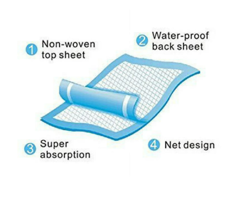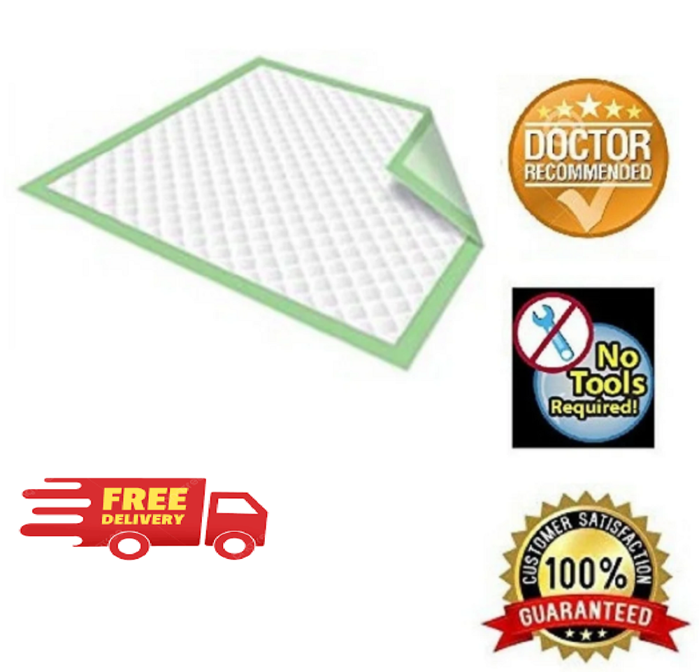 Chucks Pads, Chux Disposable Underpads 23 x 36, (50/Pack), Green, Waterproof Mattress Protector Description: CHUX DISPOSABLE BED PADS by Healthline. These universal disposables waterproof multipurpose under pads have a reliable durable design, filled with soft hypoallergenic fluff for safety and convenience, High comfort and care for babies and seniors. SMART DESIGN FULL PROTECTION AND COMFORT. Healthline Medical chucks pads are made of Latex-free high quality soft materials for fast absorbing capacity, sealed on all 4 sides, waterproof woven top layer for full leakage prevention and stain protection. HIGH LEVEL SWIFT ABSORBENT BED PADS OPTIMAL WIDE SIZE. 23? x 36? Under pads for beds (90cm x 60cm) with absorbent organic cotton, can soak up to 1500 ml of liquid for secure all-night sleep. Heavy absorbent assurance under pads, pee pads for adults, elderly, kids and children. MEDICALLY RECOMMENDED DISPOSABLE UNDERPADS MULTIPLE USES. Superb waterproof mattress protector pads for beds, Excellent for furniture and antiques. Great for babies, seniors, adults, small and large people and incontinence disposable. Help to care for your cats, dogs, puppy and beloved pets. Chucks Pads Disposable Underpads 23x36 inches, 90 x 60 centimeters (45 grams) Highly absorbent, soft hypoallergenic fluff fill Waterproof Absorption Capacity up to 1500 ml of liquid Sealed on all four sides Non-skid blue backing is made of high quality polypropylene to prevent leakage Quantity in Packages 50/Pack, 100/Pack, 150/Pack Color Options Blue, Green